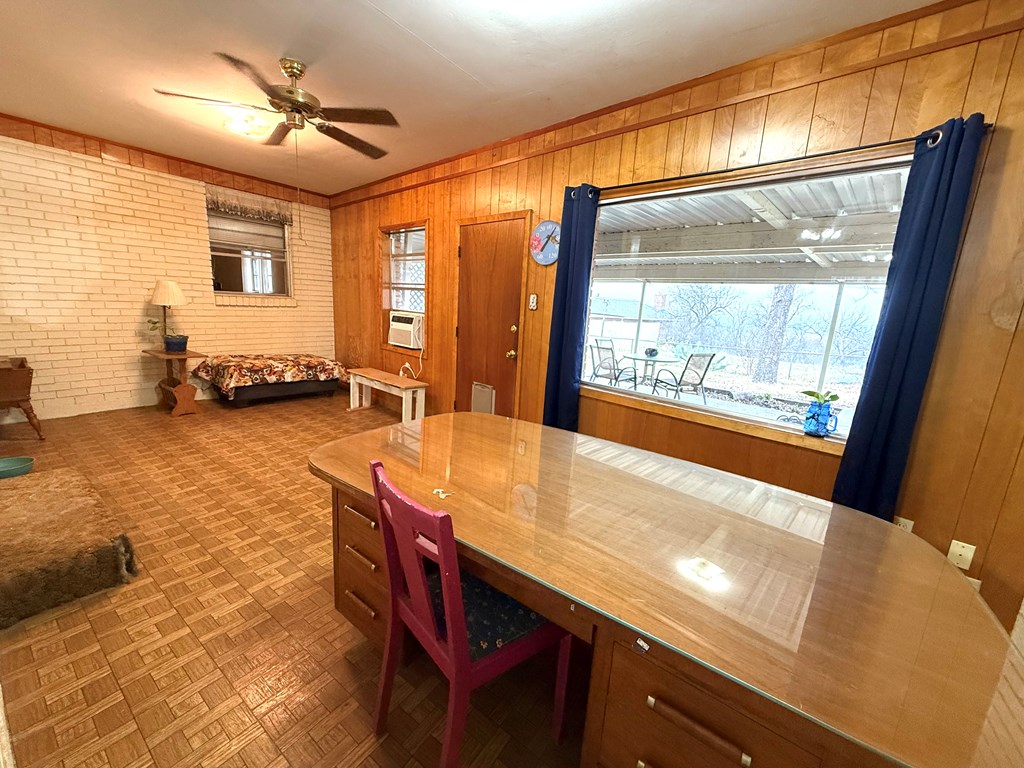 3/2 Brick home located in the heart of an established neighborhood in Ballinger, with a great view of the river. Large living area, laminate flooring, several built ins , including a beautiful hutch located in kitchen area. Circle driveway in front, Large fenced lot surrounded by large trees in the back yard overlooking the River.
