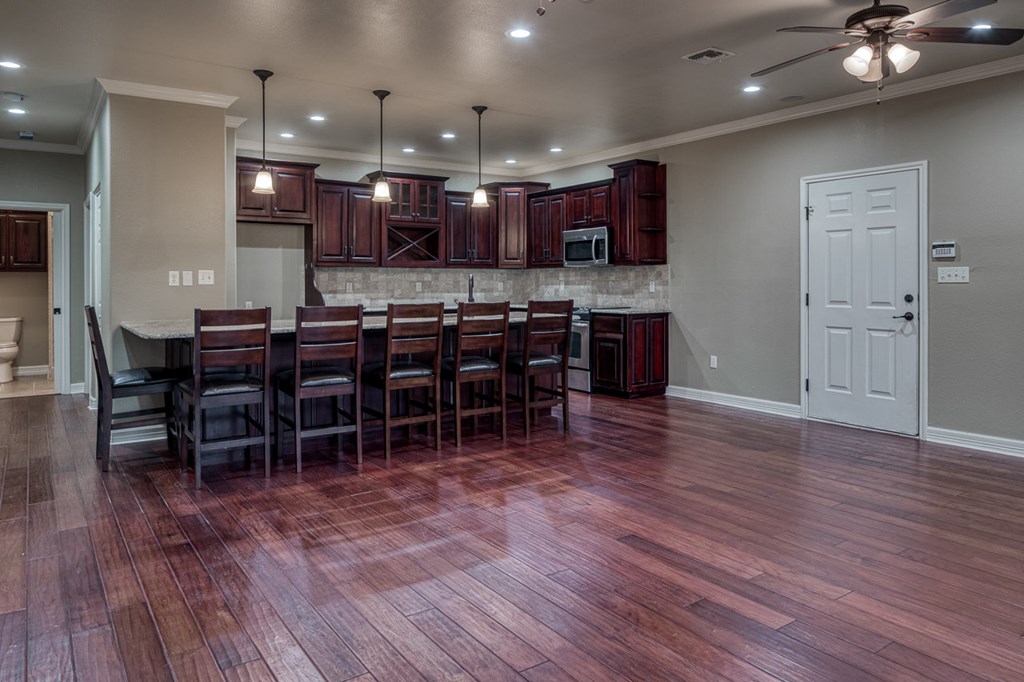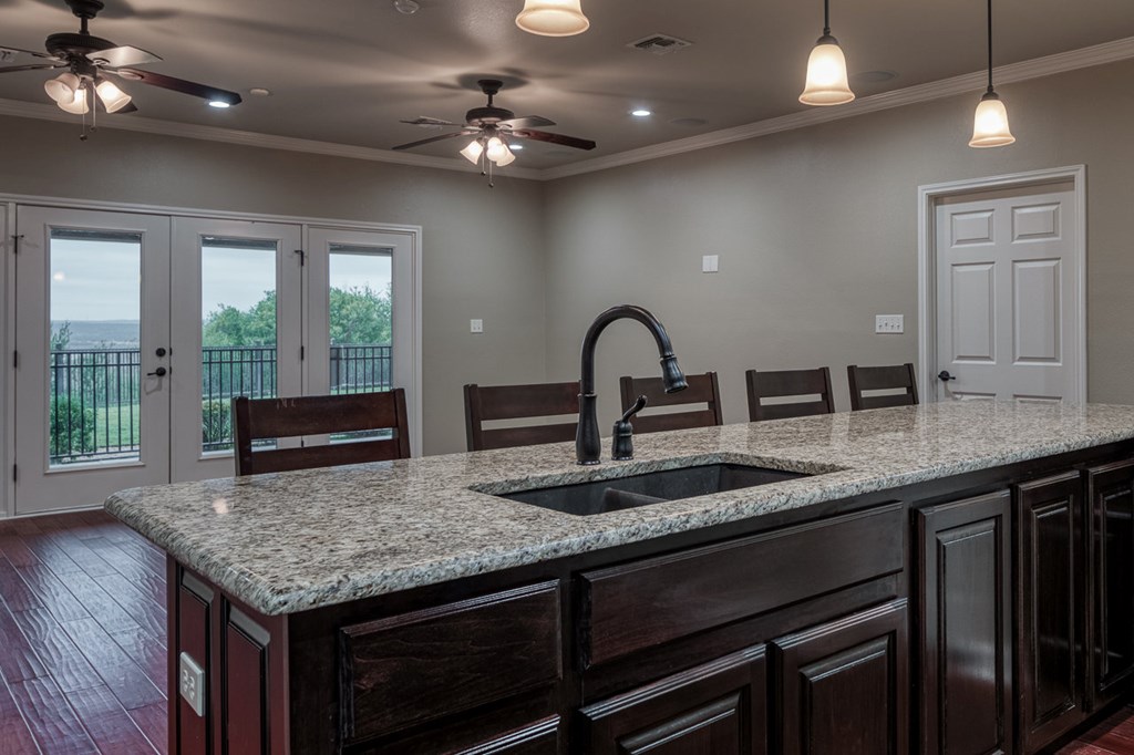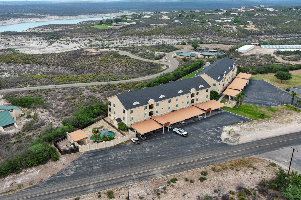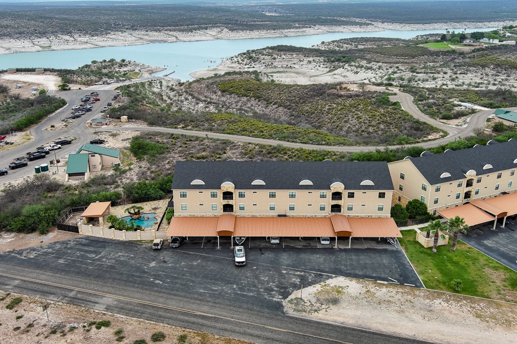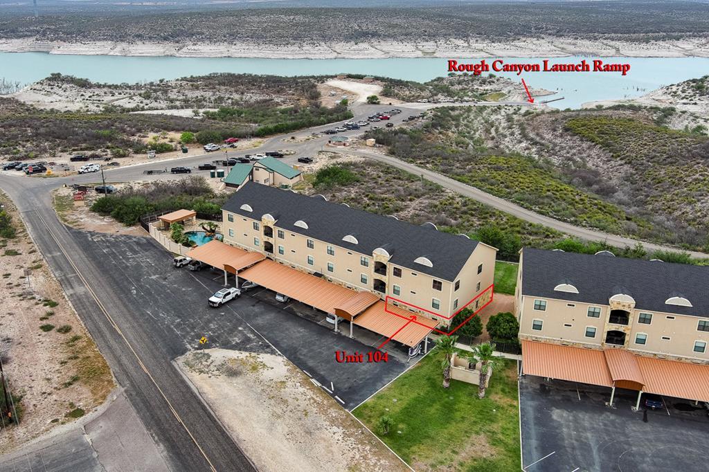 Rough Canyon Condo Unit #104. The Rough Canyon Condos are ideally located at Rough Canyon north of Del Rio, TX with access off of Hwy 277 and overlooking beautiful Lake Amistad. This 3 bedroom, 2 bath condo is conveniently located on the 1st floor with a beautiful view of the manicured lawn, just a short distance from the in-ground pool and patio area and next door to the Lake Amistad Condos is Hookers restaurant, convenient store and outdoor venue. The condo features wood laminate floors throughout with the exception of tile in the bathrooms. The open floor-plan, French doors and large windows gives the condo a very light and airy feel. A large covered patio can be easily accessed from both the living room and master bedroom. These condos are the ideal 2nd home setup where you can lock the door and be gone for months and come back to a well cared for setting. A perfect place to enjoy the natural beauty of Lake Amistad!