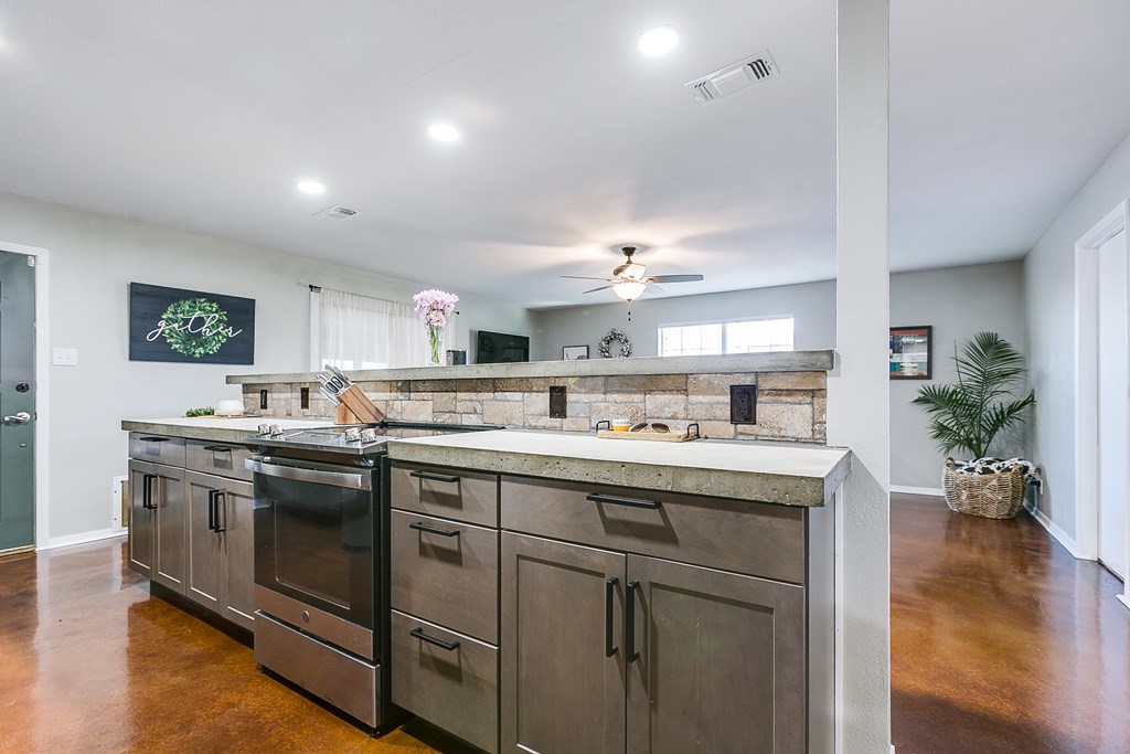 Fully remodeled home with open floor plan on two lots. The backyard includes a workshop, detached 2 car garage, water well and green house. The kitchen has new cabinets, anew stove, farmhouse sink and concrete countertops. Custom stained concrete floors throughout the home. The bathrooms have new vanities, flooring and lighting. The master bath has a new tub/shower and new rainfall shower head. 3 bedroom, 2 bathrooms and 2 bonus rooms. A quick walk to Lake View high School. Come check it out!