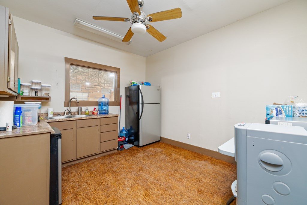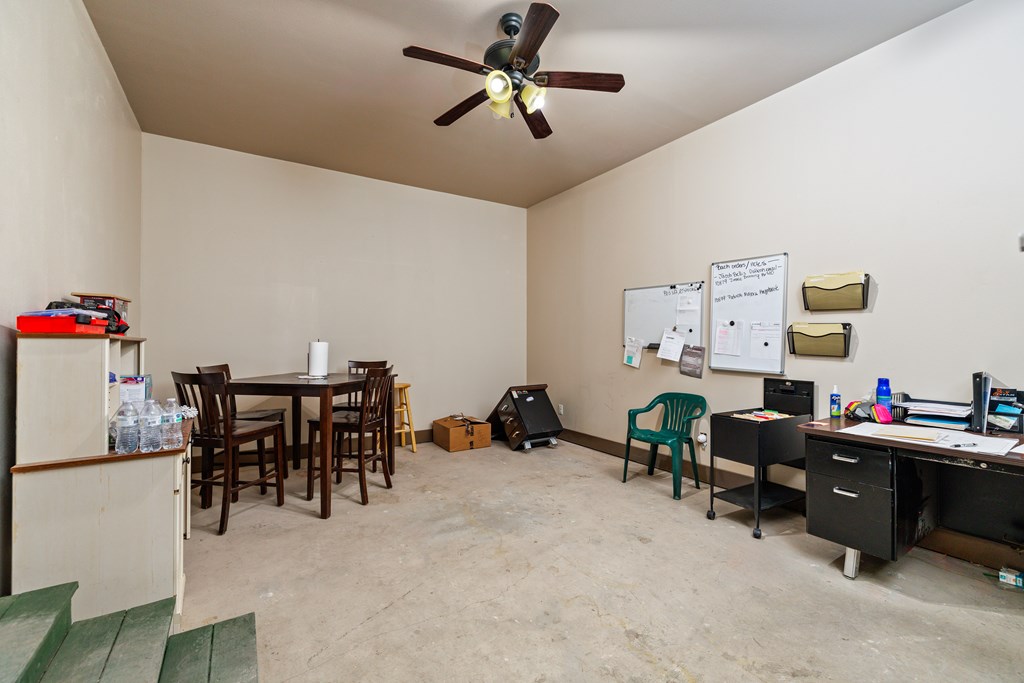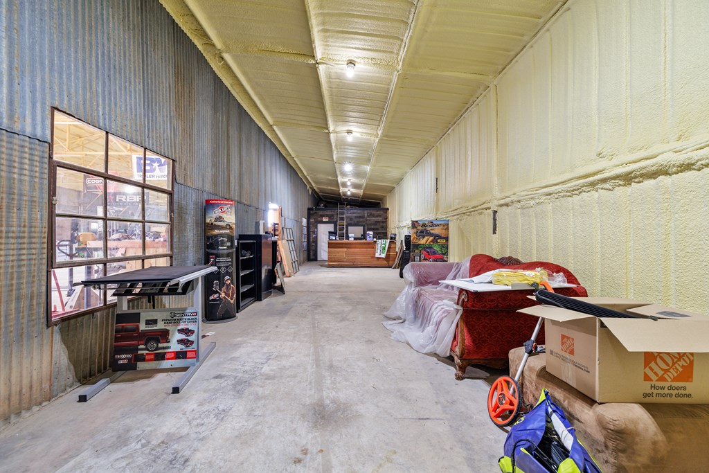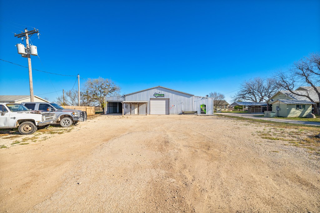 Large warehouse in downtown Wall. Reinforced concrete floors easily handle a machine shop equipment. The shop has 3 phase. The shop has had foam insulation added with doors on opposite ends to keep it cool. It also has living quarters in it with a 2 bedroom and 1 1/2 bath. Equipment might be sold with building otherwise they don't convey. Come take a look it is ready to go. this is a NNN lease.