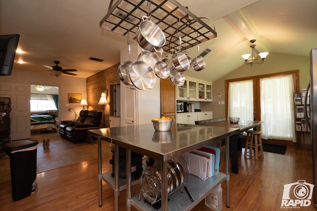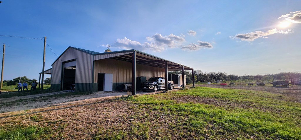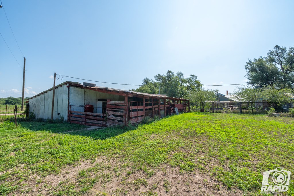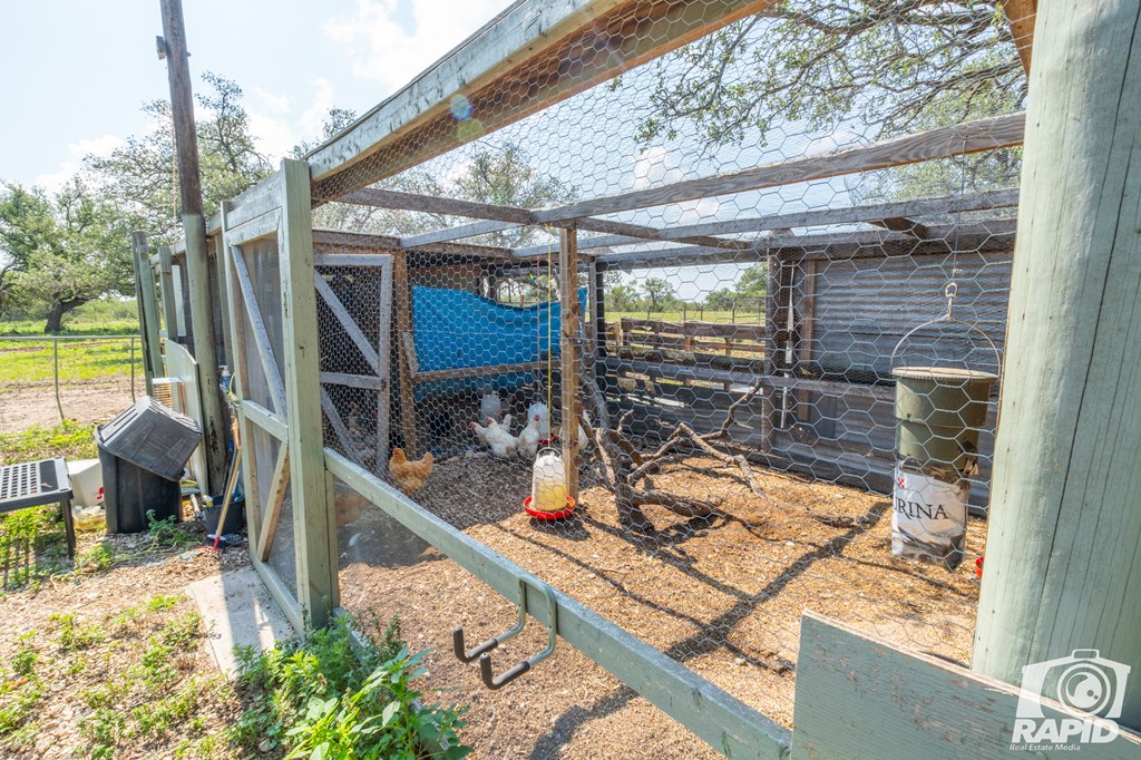 NO HOA! Enjoy the freedom and flexibility of rural living without the constraints of a homeowner's association. The remodeled 3-bedroom, 2-bath stucco farmhouse features a beautiful standing seam metal roof, covered porches and patios, a cozy double-sided fireplace, and a cellar for storing canned goods, homemade wine, or for use as a storm shelter. There is a "casita" with a kitchenette and bath, perfect for guests or as a private retreat. The 60x40 metal shop is insulated and set on concrete, complete with power, worktables, and more. There are multiple barns, covered sheds, and carports for versatile storage. The property includes working cattle pens with a Priefert scale, automatic chute, and loading alley. Additionally, there are horse facilities, feed and tack rooms, fowl pens, dog kennels, and 2 fenced fields, ideal for agriculture or livestock. The property boasts natural beauty and abundant wildlife, with Live Oaks and several herds of Whitetail and Axis deer. Motived seller