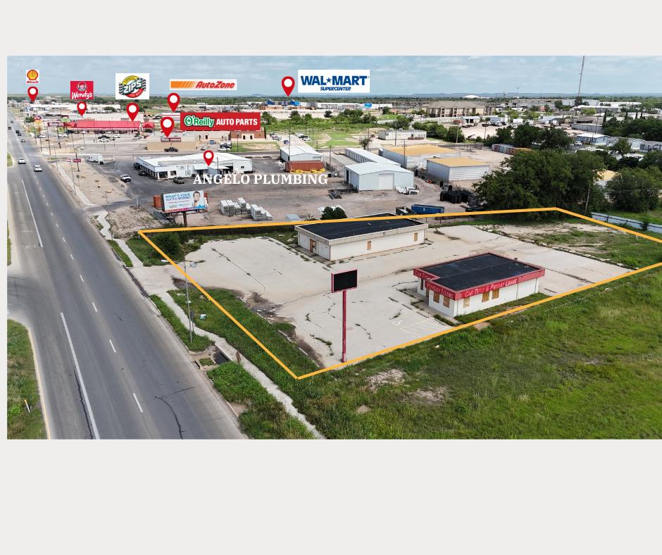 Prime Commercial Lot – High-Traffic N Bryant Location – .88 Acres Unmatched Exposure | Surrounded by National Brands | Endless Potential Own nearly a full acre (.88) of premium commercial land on North Bryant Blvd—one of San Angelo's busiest corridors! Strategic Location Neighboring top businesses: Walmart Supercenter, O'Reilly Auto Parts, AutoZone, Zips Car Wash, Wendy's & more. Heavy Daily Traffic Thousands of vehicles daily—ideal for retail, service, or franchise use. Flexible Use Portable buildings can be removed. Flat, accessible, and ready for development. Why This Lot? Exceptional frontage & visibility Surrounded by high-volume businesses Guaranteed customer exposure. Perfect for fast food, car services, retail, or office/franchise space. Don't miss this rare opportunity to build your business in San Angelo's prime commercial zone!