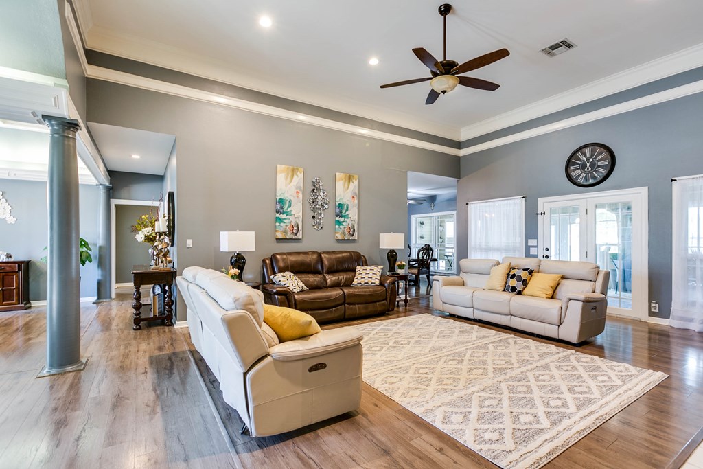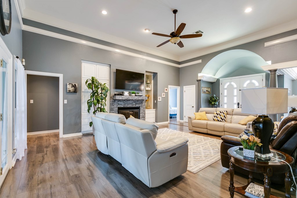 $10,000 Towards Buyer Closing Costs! Discover this timeless, beautifully updated 4-bedroom, 3-bath Estate in the coveted Upper Bluffs Community. The expansive living room boasts a grand fireplace, soaring ceilings, new laminate flooring & hand crafted crown molding. Pass the elegant dining room to find a gourmet kitchen w/ granite countertops, double ovens, pantry & a secondary dining area. The primary suite features a luxury updated walk-in shower, garden tub, split vanities & 2 oversized closets. Split floor plan allows for guest bed & bath privacy while a convenient jack-and-jill bathroom supports 2 other bedrooms. Enjoy Texas sunsets from the versatile west-facing green room or relax in the beautifully landscaped yard under one the pergolas while the man of the house tinkers in the custom detached workshop or newly built carport. The garage, thoughtfully converted into a game room can easily be reverted to a traditional garage if needed, offering flexibility to suit your lifestyle.