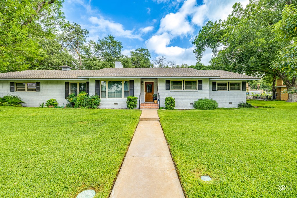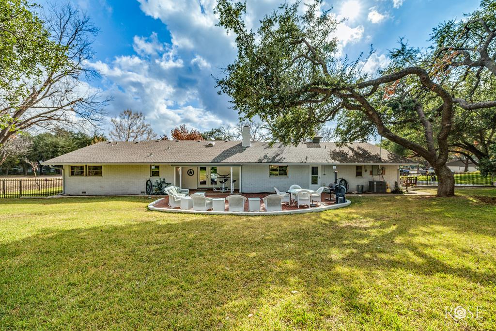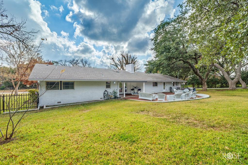 Discover timeless charm in this beautiful brick home, tucked away in a prestigious, tree-lined neighborhood. The landscaped yard creates a serene setting, while the all-electric design ensures modern efficiency. A spacious kitchen with stained concrete countertops flows into a breakfast area and formal dining room—perfect for hosting gatherings. Cozy up in the den with a wood-burning fireplace or retreat to one of the 3 bedrooms, complemented by 2.5 baths, a cedar closet, and built-ins. Tile, wood laminate, and plush carpet add style and comfort throughout. A utility sink in the laundry room and a large brick patio overlooking the backyard, and a two car garage offer practicality and convenience. This well kept home is ready for you and your family to move in and enjoy.