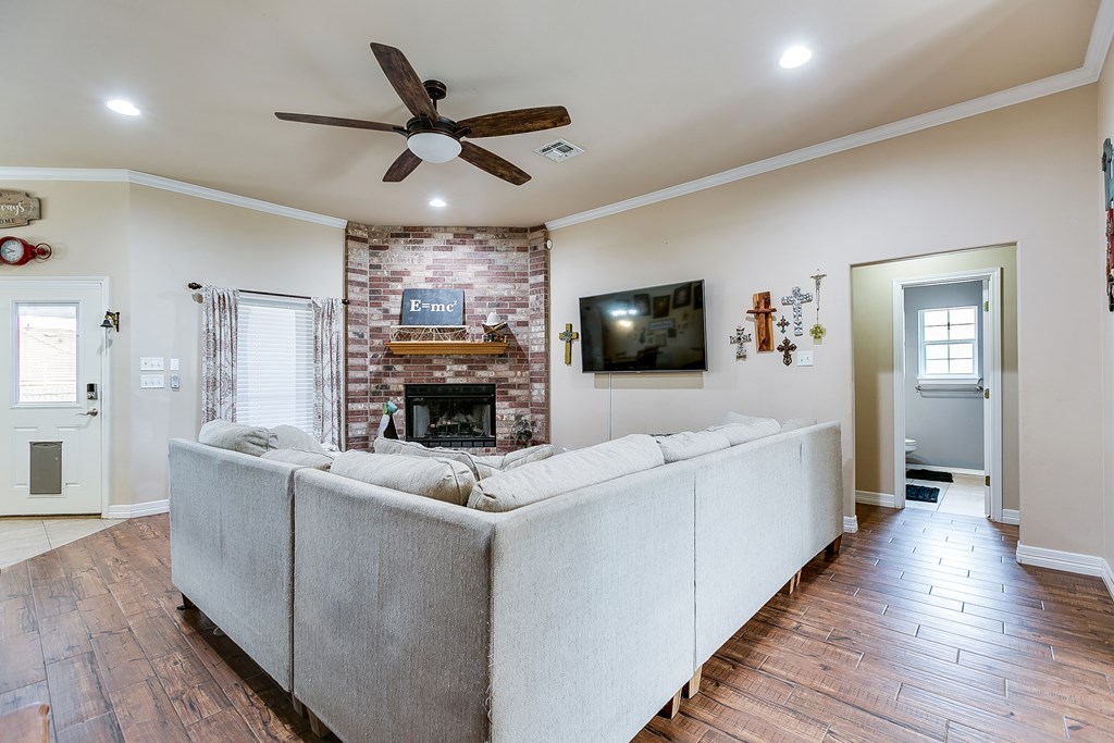 Welcome to this delightful family home nestled in a peaceful San Angelo neighborhood. This spacious 2,070-square-foot residence features four bedrooms and two and a half bathrooms, offering the perfect blend of comfort and functionality. The heart of the home showcases a huge kitchen, ideal for culinary enthusiasts and family gatherings. Nature lovers will appreciate being just minutes from San Angelo State Park, providing endless opportunities for outdoor recreation and scenic walks. Everyday conveniences are within easy reach, with H-E-B grocery store, Walmart Supercenter, and Lowe's Home Improvement all nearby. The popular Sunset Mall is also just a short drive away, offering plenty of shopping and entertainment options. The primary bedroom provides a serene retreat, while the additional bedrooms offer versatile spaces for family members, home office, or guests. The open layout creates an inviting atmosphere perfect for both relaxing and entertaining. The back yard is Huge!