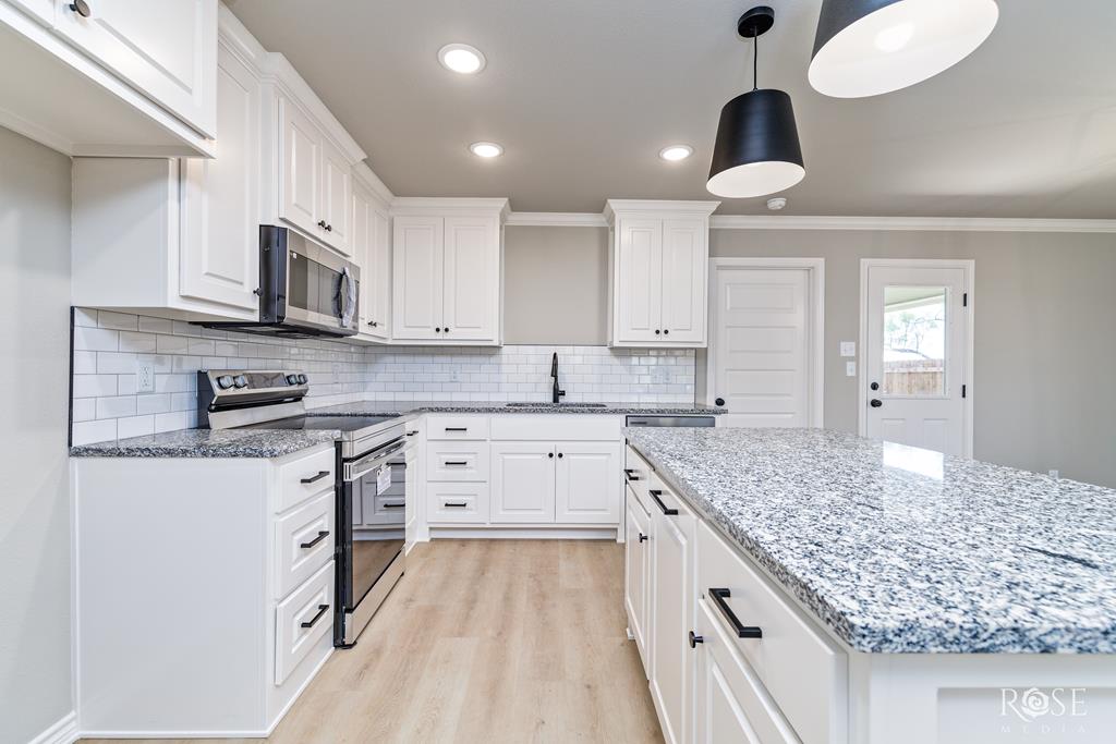 Another new construction by Mission Land Company. Completion January 2025. More three and four bedroom homes available. This is the three bedroom, Guadalupe plan. Three bedrooms and two baths with a split bedroom, open floor plan. Custom cabinets, stainless steel appliances, stained cedar fence, oversize garage, granite countertops, luxury vinyl flooring and foam insulation! Zero down payment/ closing costs available with City of San Angelo assistance. Call for details. Pictures from same floor plan built at 1015 E 40th.