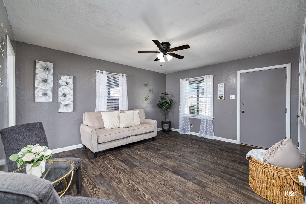 Welcome to this charming and cute 2-bedroom, 1-bath home that truly shines with its great curb appeal! A lovely mature tree in the front yard adds character and shade, complementing the home's inviting exterior. Step inside to find stunning vinyl flooring throughout, giving the home a modern yet cozy feel. The kitchen is well-equipped with plenty of cabinets for ample storage, perfect for keeping everything organized. Off the kitchen, you'll love the convenience of the laundry and storage room, providing extra space for all your needs. The large backyard is ideal for outdoor entertaining, complete with a shed for additional storage and alley access. This home is the perfect blend of comfort and functionality!