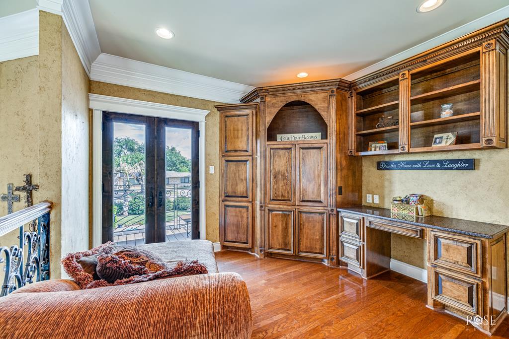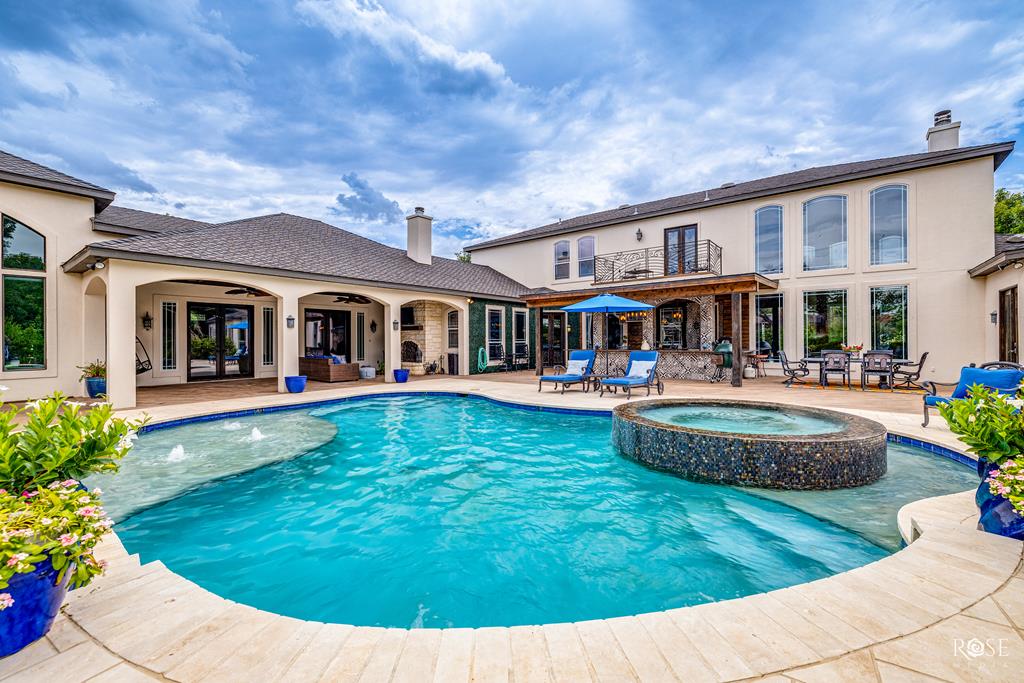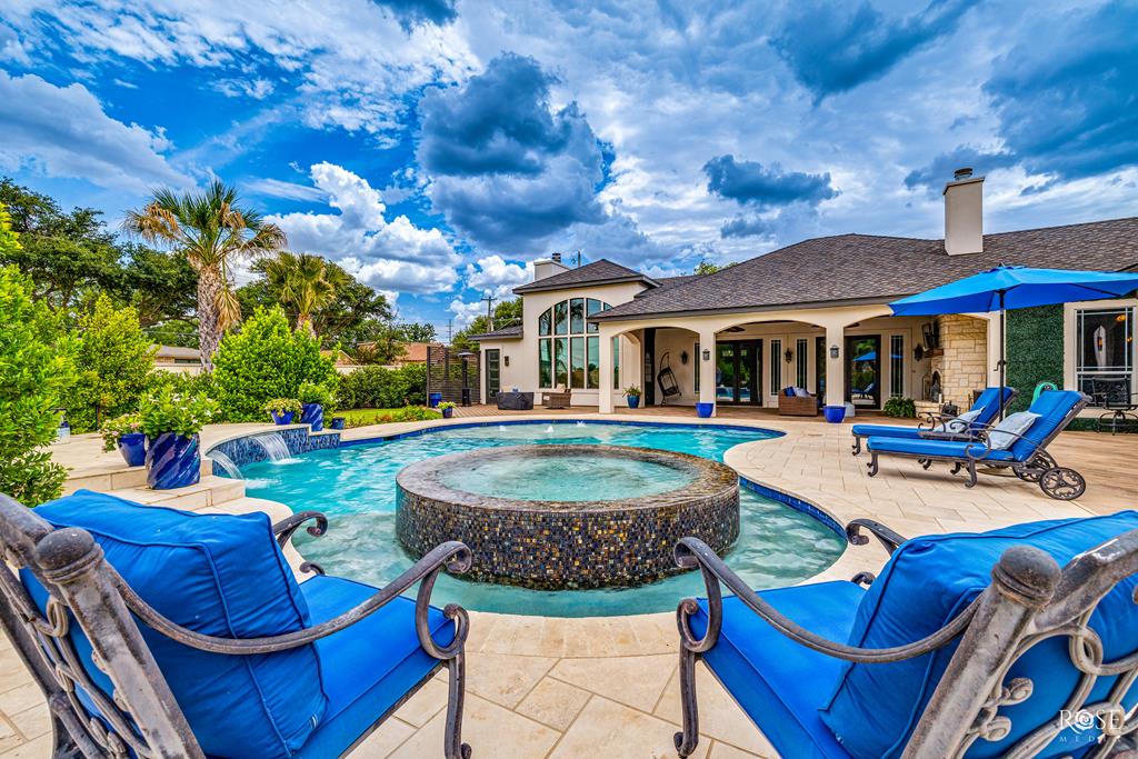 Discover luxury in this stunning two-story Mediterrnean style home spanning nearly 5,500 sq/ft. Impeccable craftsmanship and sophistication greet you with hardwood and travertine tile floors throughout. Unwind in your private theater room or entertain effortlessly in two spacious living areas, a study/office, and a formal dining room. Each bedroom boasts an ensuite bathroom, offering everyone their own private sanctuary. The gourmet kitchen features Thermador appliances, perfect for the chef in the family. Step outside to a beautifully landscaped backyard with a covered patio and an incredible outdoor kitchen, ideal for entertaining or enjoying serene moments. On hot summer days, retreat to your custom-built pool, complete with a hot tub and in-pool lounging area. This home offers too many amenities and updates to list. Call your favorite REALTOR to see this oasis today.