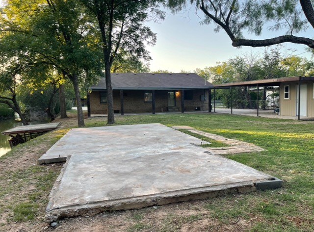 Most homes anticipate memories to be made, but this property offers abundance of laughter & fishing. Property is LAKE OWNED. Small boat docking area. Access to 2 SIDES of the canal out your back door that leads to main body of Lake Nasworthy. Home will allow you to live the SUMMER LAKE life right into the WINTERY nights setting by a fire on the estimated 12X24 concrete slab out back. Driveway is wide enough for side-by-side boat and truck in tow. 49 tons of 1-2 in gravel base has been recently laid. E New porch post, wraparound porch lighting, flower bed and river rock landscaping. Also, note guest house or (3rd bedroom) is being finished out. This room will accommodate 2 full beds for your guest or extended family. Interior has new floors, lighting, ceiling fans, kitchen, faux beams, bar island, cabinets, countertops, sink, disposal, doors. New master bathroom (rain shower with river rock base walk-in shower). Painted interior, A/C 2025, covered patio, 2 car metal carport. RV Outlet.