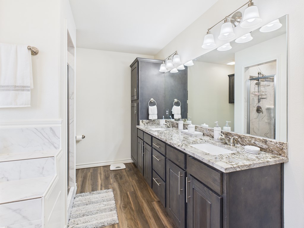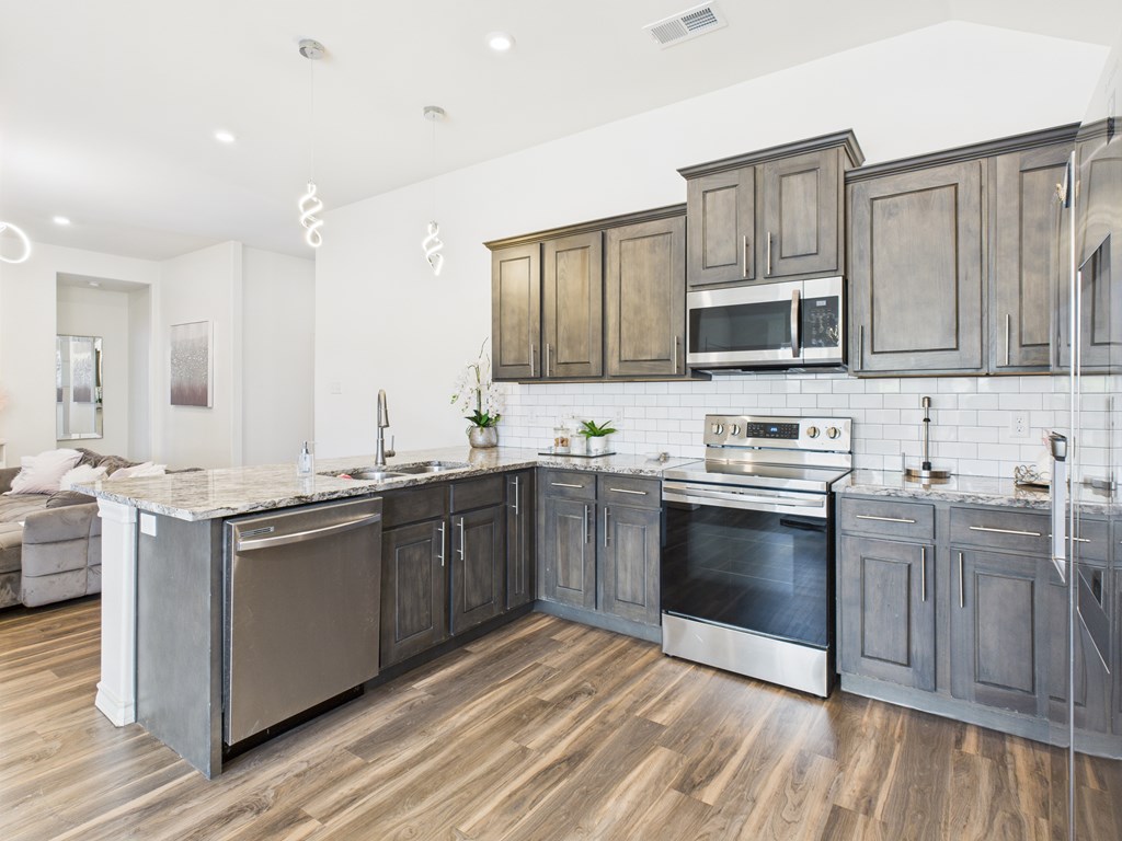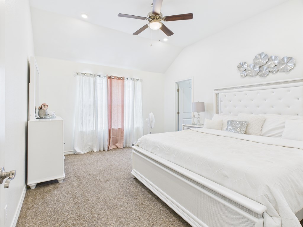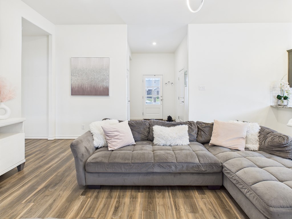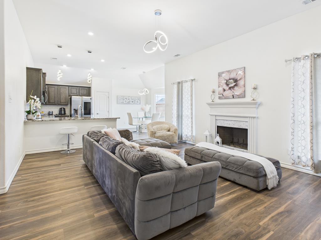 Welcome to your next home in the highly sought-after Lakeshore Estates community! Step inside to a wide, inviting entryway that flows seamlessly into the open-concept living and kitchen area—perfect for everyday living or entertaining. Soaring 10' ceilings fill the space with natural light, creating a bright and airy feel throughout. The spacious primary suite offers a relaxing retreat, complete with a generous walk-in closet. Down the front hall, you'll find a thoughtfully placed laundry room and three additional bedrooms, each with roomy closets for ample storage. Situated on one of the larger lots in the neighborhood (0.208 acres), the backyard is ideal for entertaining, play, or even your dream pool. With a clean, modern aesthetic, this home is move-in ready and just waiting for your personal touch!