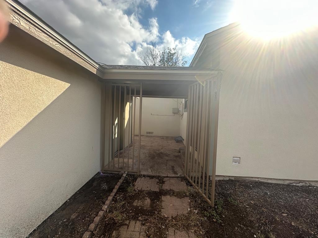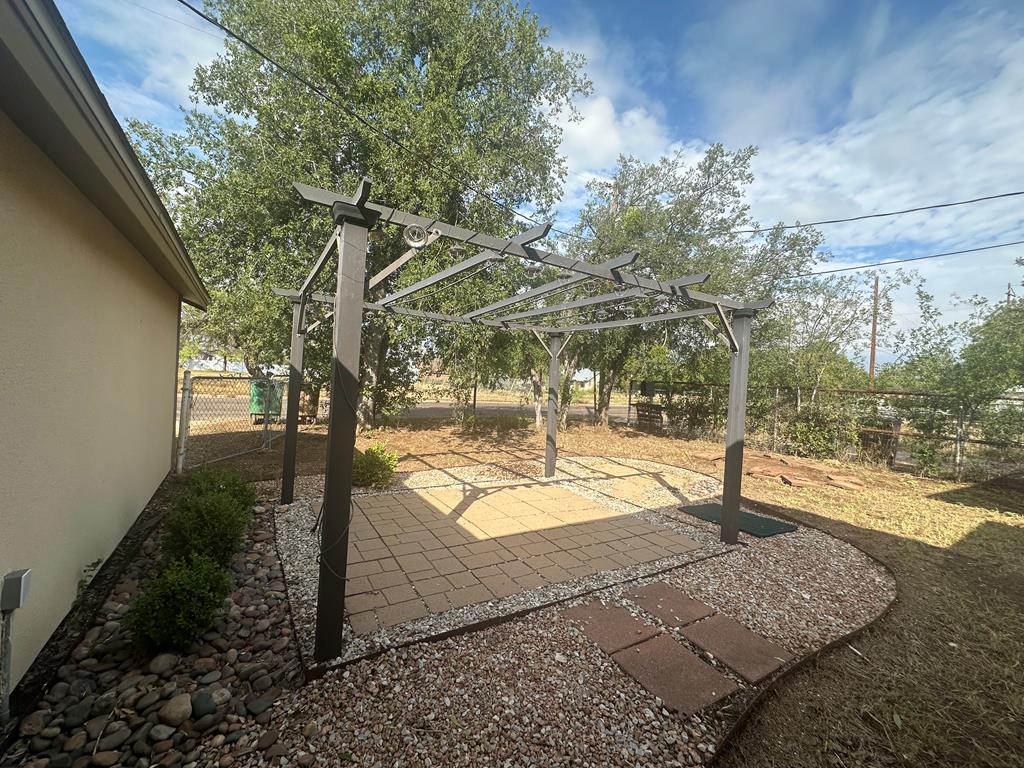 Very cozy 2-bedroom, 2-bath corner lot home. This move-in ready home features a wood burning fireplace in the primary bedroom. You'll love the newly installed wood laminate flooring in the kitchen /dining, utility room, pantry area, and bathroom. The pantry area could also be used as a small office or craft/sewing room. Step outside to enjoy the backyard under the pergola perfect for entertaining. The property also includes a spacious storage building, a small patio area that leads to the garage, and a porch off the primary bedroom with doors offering space for relaxing. For indoor entertaining, you''ll enjoy the gas fireplace in the living room and the additional living area . The stucco, pantry, A/C, roof, and hot water heater have been completed or replaced within the last 5 years. The carpets in bedrooms are only 3 years old and have been thoroughly cleaned. The wood floors in the living areas have been buffed to restore their shine. Don't miss out on this well kept home.
