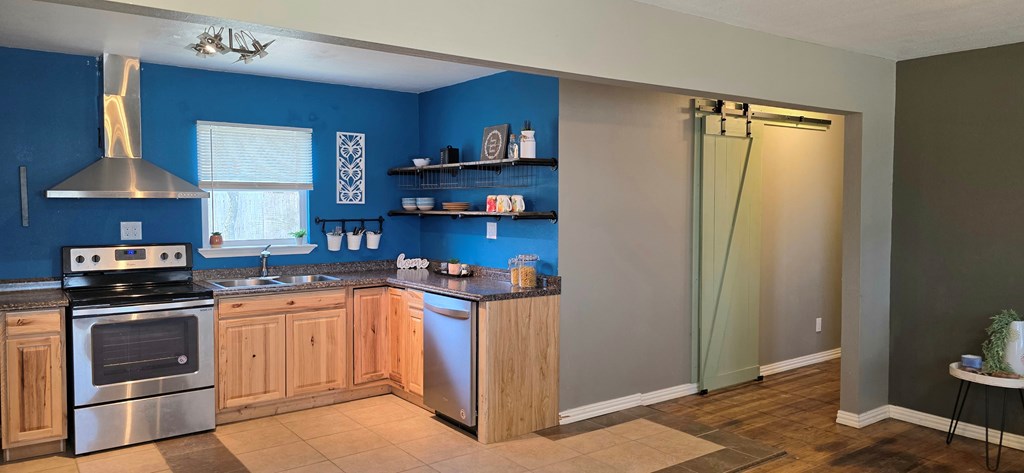 OPEN CONCEPT!! You'll love this 2 bedroom, 1 bath home with a fully fenced backyard. This home offers hardwood floors throughout with the exception of the tiled floors in the kitchen and bath. The open concept layout gives you the feel of living in a larger space. The kitchen has nice wooden custom lower cabinets with a pantry style cabinet next to the fridge. The open shelving provides space for your everyday kitchen necessities. The bathroom has a modern feel with a white tiled shower-bath combo and a floating vanity with a raised rounded sink. You will enjoy the exhaust fan on the ceiling that not only offers full lighting, but a nightlight and the option to connect your smart device via Bluetooth so that you can listen to your favorite music or podcasts while dressing for the day. This cozy home also offers a 4 Mini Split System with 3 remote controls to adjust each. You can protect your vehicles under the 2 car carport with a laundry room attached as well as extra storage space.