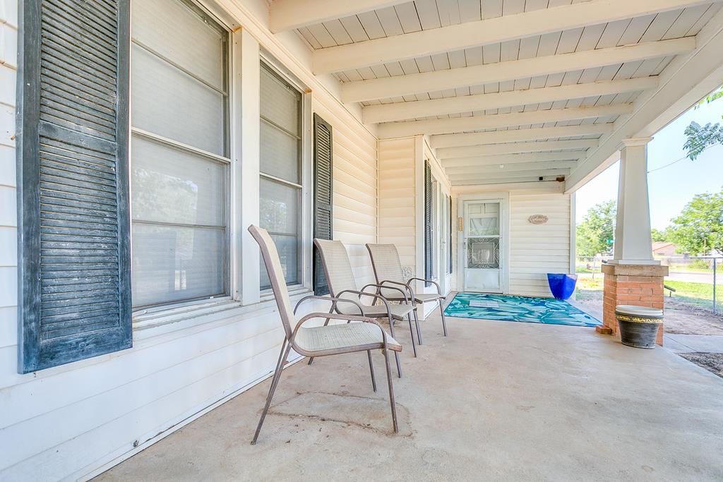 Hidden gem in Blackwell, TX. Built in the 1920's, this charming 3 bedroom, 1 bath home has been remodeled and updated while maintaining its ageless beauty. New kitchen countertops, new GE Stainless Propane Range, new built-in GE stainless microwave, new laminate flooring throughout the house, complete bathroom remodel, new interior paint throughout the house, new blinds and draperies, all appliances convey, including the washer and dryer. Neat attic space upstairs that could be finished out and converted into a bedroom or playroom...so many possibilities. Large corner lot, with a spacious yard that has a chain-link fence around the entire yard, large, mature pecan and elm trees, metal storage building in the backyard, attached 2-car metal carport over concrete. Just minutes down the road to Oak Creek Lake and to the Blackwell School.