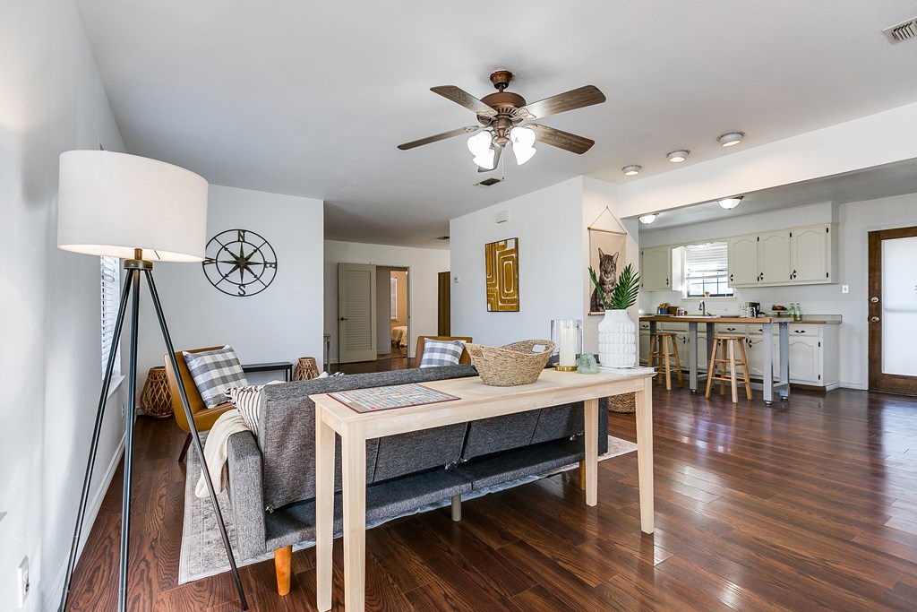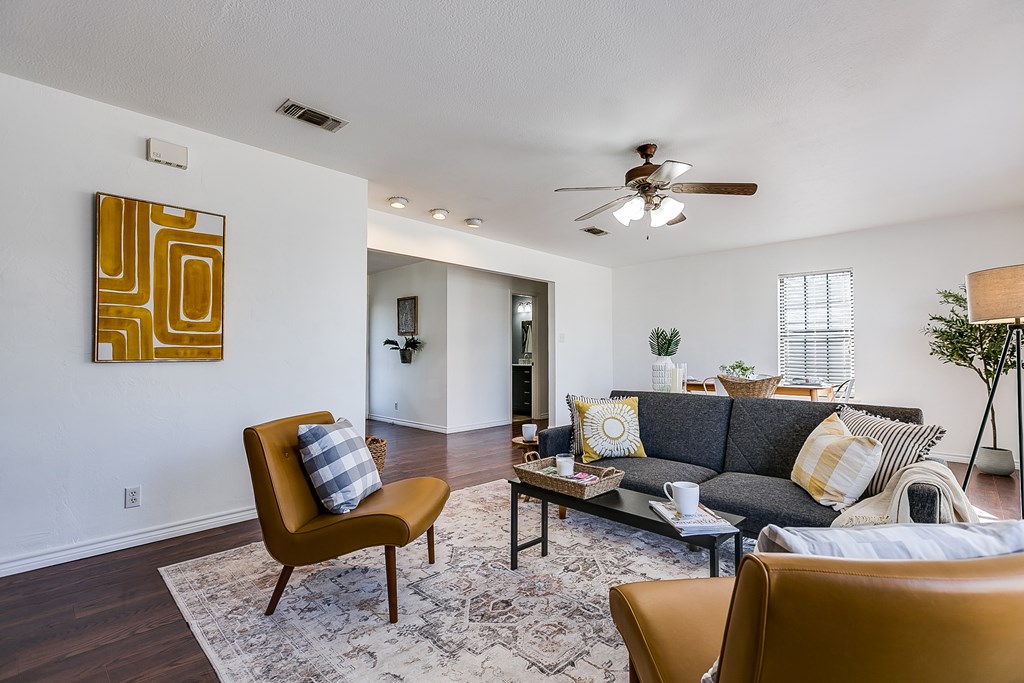 Those seeking a quiet neighborhood with quick access to the highway and shopping will love this light filled home where the only effort you will make is moving your items in. Fresh paint throughout, both interior and exterior, with neutral colors designed to fit every design vibe. Three possible dining areas means you will be hosting Thanksgiving! Split bedrooms, and two updated bathrooms mean that chore won't be on your task list. In the not so exciting but highly important category...the sewer line has been replaced. Finally, the pantry, the lovely wood privacy fence in great condition, a young roof (5 years), the covered patio and a workshop to fit all your hobbies make this property something special.