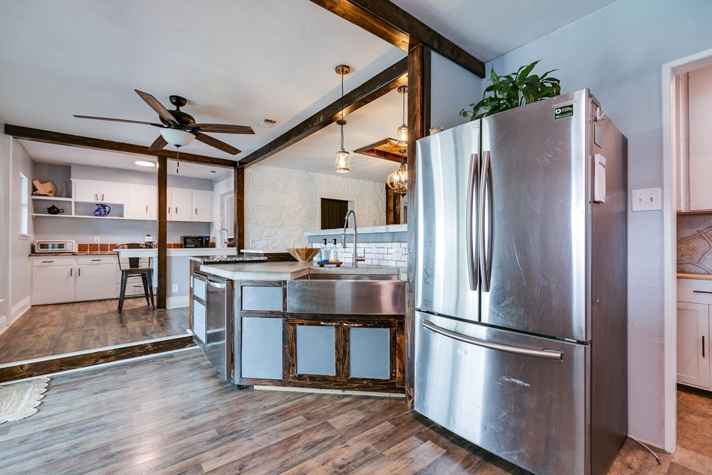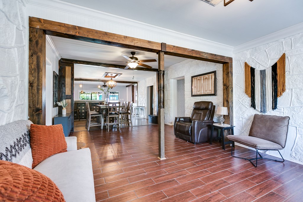 WOW is right—this one delivers! Sitting on a spacious double lot, this beautifully updated 4-bedroom, 3.5-bath home checks all the boxes: curb appeal with a circle drive, an inground swimming pool perfect for Texas summers, new roof and a versatile outbuilding that screams potential. Apartment? Massive workshop? Mancave? Pool house? You decide. Inside, you'll find thoughtful designer touches throughout—concrete countertops, a commercial-style gas range that makes a statement, and bathrooms that are truly Instagram-worthy. Sip your morning brew at the dedicated coffee bar, and—believe it or not—actually enjoy laundry day in the oversized laundry room. Step outside to a shaded backyard with mature pecan trees, and fire up the grill under a generous covered patio made for entertaining. This property is more than move-in ready. It's live-your-best-life ready.