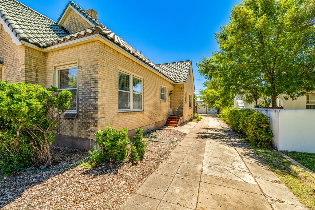 Location! Location! Location! This office space with 2,344 is perfectly located in the heart of Historic Downtown San Angelo on the popular street, West Twohig. Once you step into this grand property built in 1959 you will fall in love. The Property is currently zoned CBD (Central Business District) which offers countless possibilities for your business or residential needs. From the custom crown modeling, multiple gorgeous built-ins, to the arched walls, this property exudes history and elegance. You will love the original hardwood floors, French doors, beautiful sleek tile and stunning plantation shutters. The grounds of the property offers xeriscaping, extra covered parking, three covered patios and a garage that offers a drive through with 2 garage doors opening to the alley next to First Financial Bank's parking lot. Call for your showing!