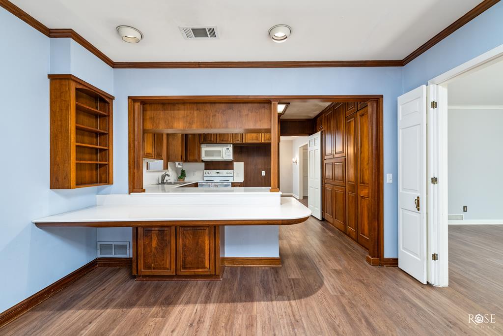 Centrally located in the heart of the San Angelo near schools, parks, restaurants, and shopping this 2,148 sq/ft home with 4 bedrooms and 2 bathrooms definitely has the WOW factor! Driving up to the house you will be overcome with a feeling of elegance and warmth. Once inside it will be obvious that the kitchen is the hub of the house and is surrounded by two living areas and a formal dining room. Entertaining will be a breeze and a delight. You will appreciate the beautiful custom walnut kitchen cabinets too. The master bedroom and one of the other bedrooms is located downstairs. There are two large bedrooms and a bathroom upstairs that offer great separation and privacy from the rest of the house. One of the great features of this house is the outside space. Large mature trees give plenty of shade while allowing the perfect amount of sunlight to filter down. The covered patio with extra storage in the back creates the feeling of an outdoor room that has endless possibilities.