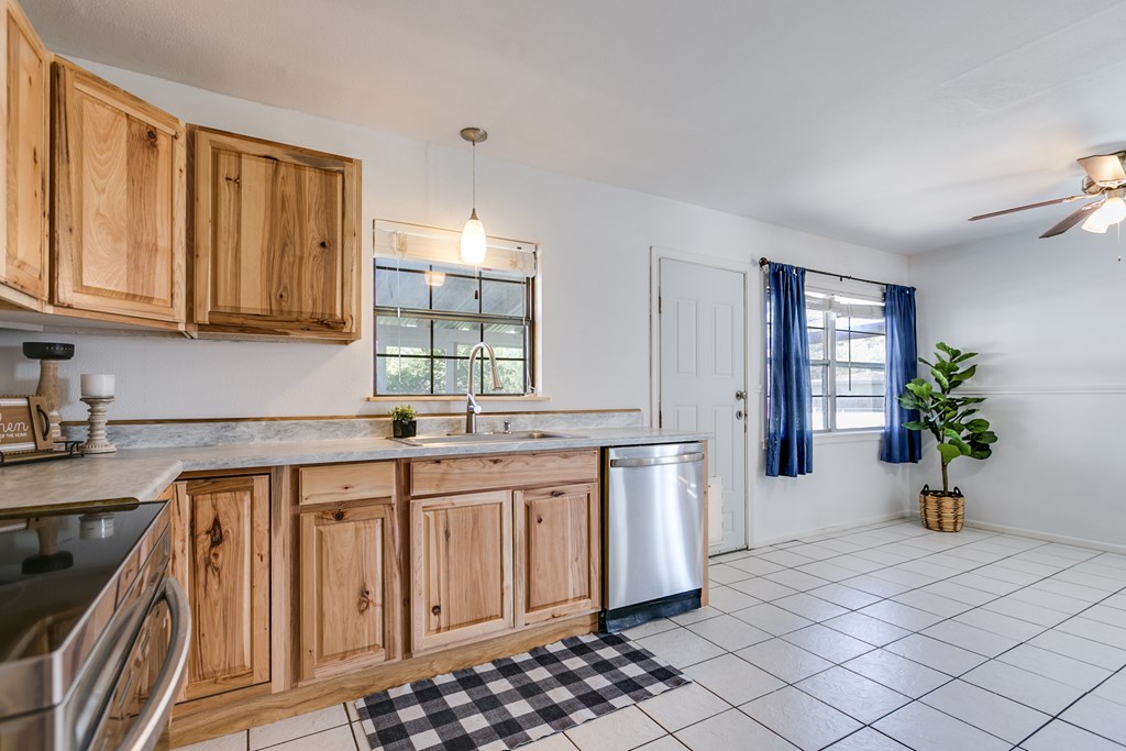 This charming two bed, two bath College Hills home is situated within walking distance to Angelo State University, Glenn Middle, and Crockett Elementary Schools providing a location ideal for families and students alike. Enjoy nearby parks, cafes, and shopping, all while being just minutes from campus. Enjoy the benefits of energy-efficient solar panels, helping to lower your utility bills while you embrace sustainable living. The spacious living area invites natural light, creating a warm and welcoming atmosphere. The newly renovated kitchen offers all new appliances, cabinets, countertops and farmhouse sink. Each bedroom offers comfort and privacy, with generous closet space. Enjoy sipping sweet tea while visiting with friends and family under the screened in covered patio overlooking the spacious backyard. This home is well kept and move in ready. Don't miss this opportunity to live in a vibrant community with all the conveniences at your fingertips.