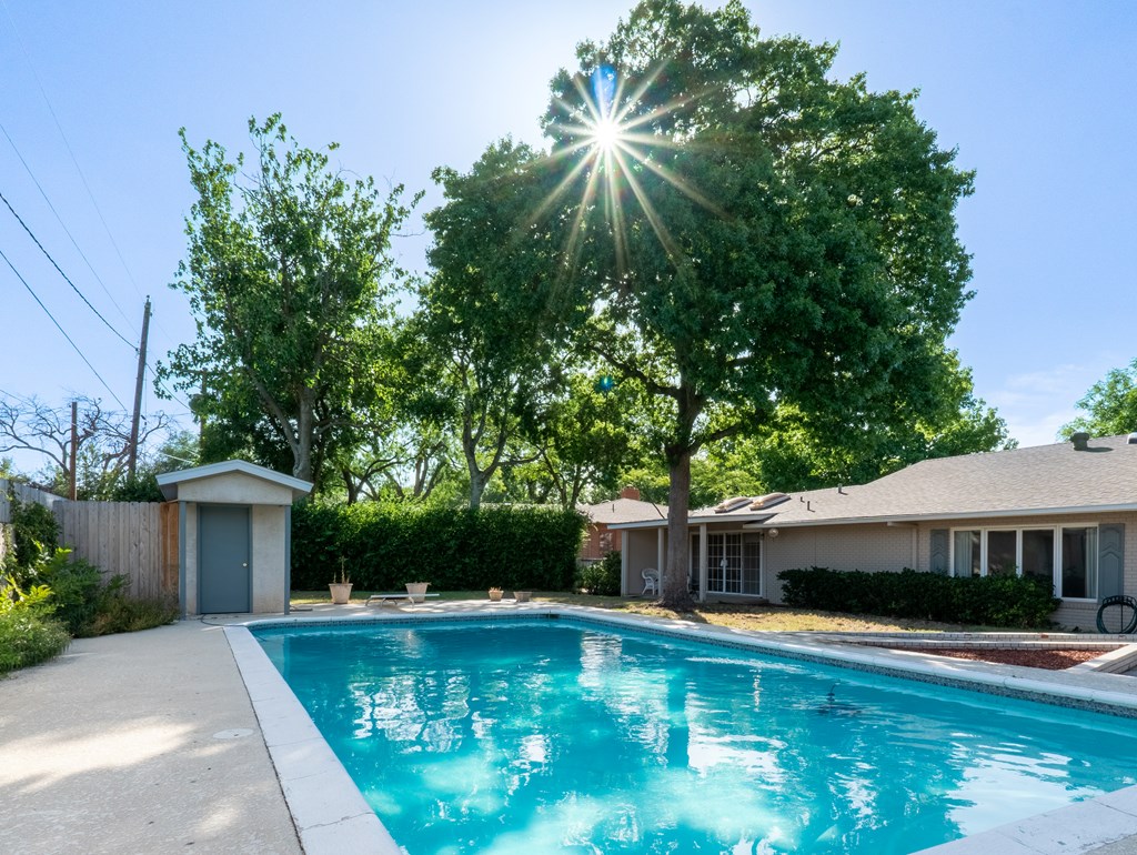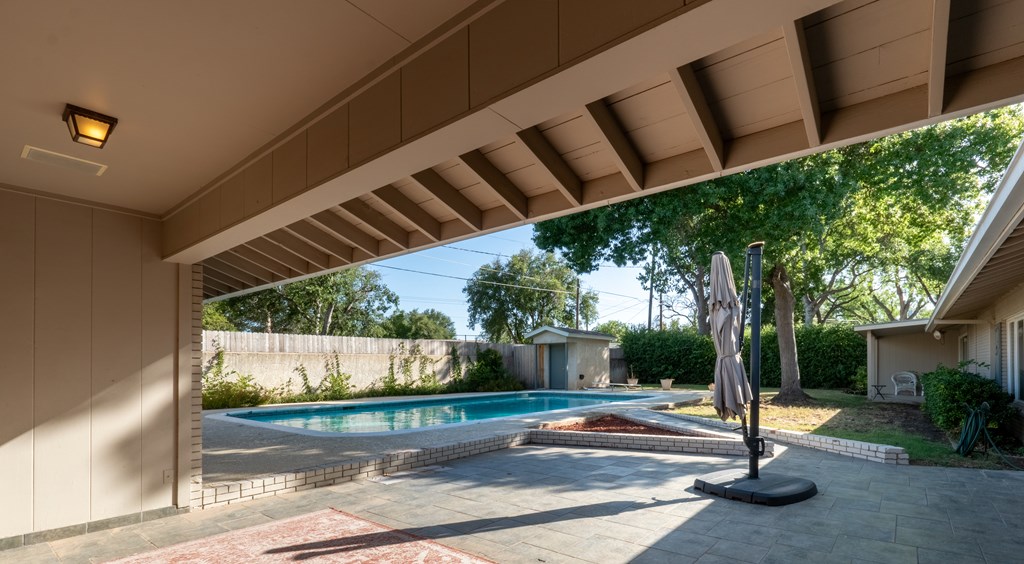 This grand 3/3+ home with a POOL has the perfect layout and space for a multi-generational family. Walk all the kids to school as it is only short walk to Angelo State University, Crockett Elementary & Glenn Junior High. This spacious home has 3 bedrooms, each with its own en suite, plus a half bath. It boasts lush landscaping, 2 large living areas, a cozy gas log fireplace, plantation shutters throughout, a custom dining room & updated chef's kitchen with double oven! The master bath feels like a Grecian spa, with glam space and an extra area for a nursery, workouts, or a reading nook. Also has private patio access to the pool! The 3rd bedroom has a fully accessible bath, with a roll-in shower. This family home has an amazing cool-deck pool for those Texas summers. Winter? This pool is HEATED, with a new gas heater that can provide comfortable all year swimming. The newly replaced robotic pool cleaner, pump, cover, & surface skimmer make maintenance easy!