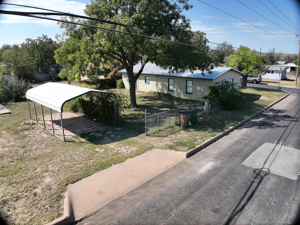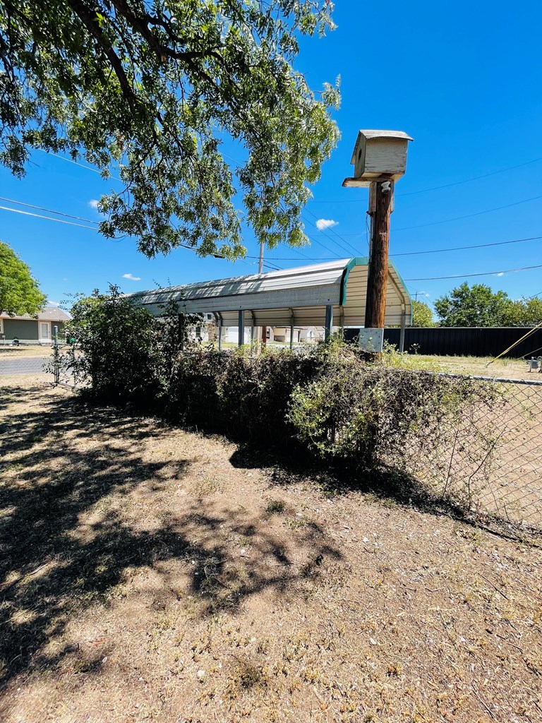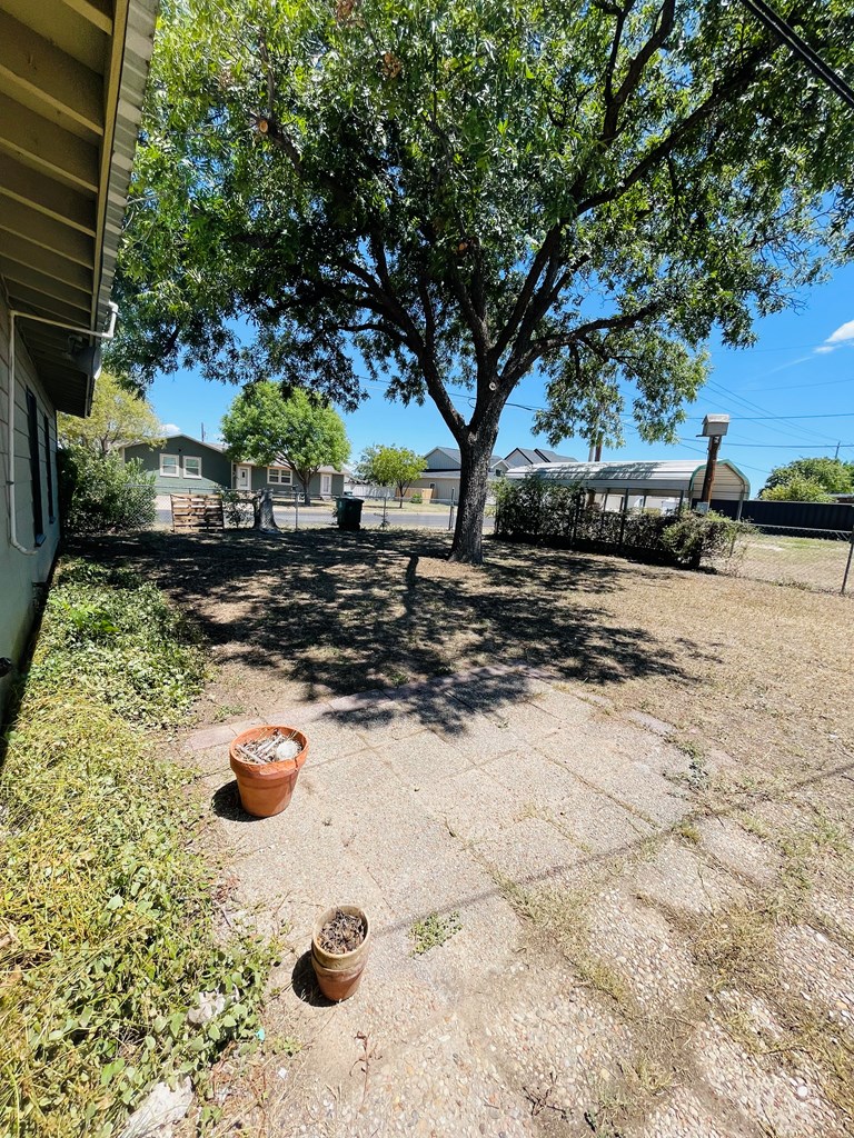 Discover this inviting 3-bedroom, 1-bath home, perfectly situated and shaded by large pecan trees on a spacious corner lot. With recent updates including new flooring and fresh paint throughout, this home is move-in ready and waiting for you. The durable metal roof ensures longevity and peace of mind, while the detached covered carport offers convenient parking and protection for your vehicles. You'll love the extra dining/sitting/living area and bay window, extra large lot with ample parking space, perfect for accommodating guests or any additional vehicles. The large backyard has a concrete slab ready for a new shop or storage building and also provides ample room for outdoor activities, relaxing in the shade, gardening, or future expansion. This property is a great find for those seeking comfort, convenience and plenty of room to unwind. Don't miss out on this opportunity to make it yours!