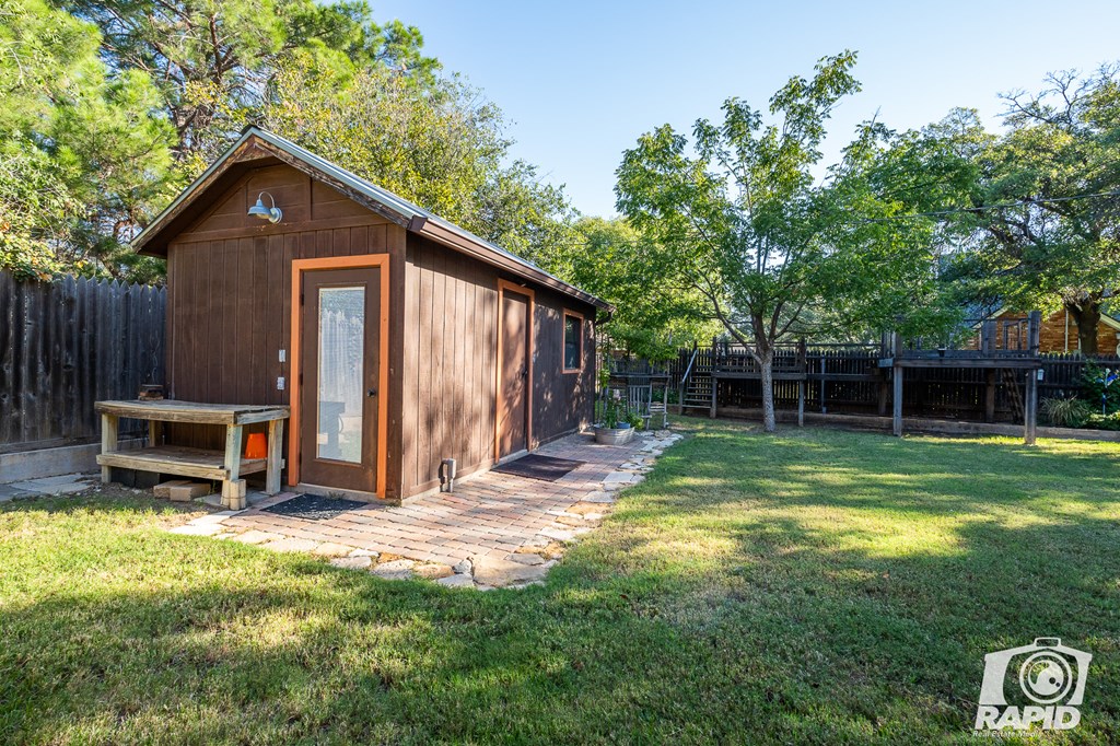 Imagine the possibilities with this 4 bedroom home with 2 full and 2 half bathrooms. Nestled in a quiet shade-tree lined cul-de-sac within popular College Hills South area. Spacious living and comfortable floor plan with large rooms. The curved fireplace and natural light will make you feel like home. The utility room features a sink, built-in ironing board, storage, along with a built-in desk. The back porch is perfect for relaxation with its secluded charm, shade trees, large covered patio, and workshop.