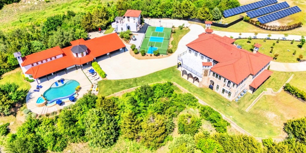 Welcome to La Casa de Fe, nestled in Decatur, TX, just a 30-minute drive from Ft Worth. This private estate spans 25 acres and offers some of the most breathtaking views. At its heart lies a luxurious Spanish-style mansion featuring a 1,200 sq. ft. primary suite, four en-suites, library, media room, private office, and expansive living areas surrounded by resort-style living spaces that cater to comfort, elegance, and entertainment. The prestigious outdoor entertainment areas add to the charm. The air-conditioned six car garage fulfills your automotive needs. The separate pool home serves as a fully equipped secondary residence and game room. It opens seamlessly to a show-stopping resort-style pool with a 38-foot infinity edge cascading into a lower reflective pool. For guests seeking privacy, the Parisian-inspired villa delivers elegance and romance, with sweeping views and upscale accommodations that rival top-tier resorts. Stay active in your private fitness center.