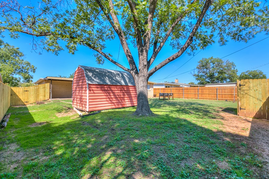 Great location close to Angelo State University, restaurants, and shopping! This cute mid-century style home has updated wood laminate in the living rooms and bedrooms. There is a master ensuite bath for convenience. The living room has wonderful picture windows letting in bright natural light. A second living space would make a great office, playroom, 2nd TV room, or possibly large dining room. Sliding doors lead out onto a spacious covered patio and big open back yard for the kiddos to have great space for running around. A large storage building sits in the backyard for any lawn equipment you might have...there is a sprinkler system, so you will need that lawnmower! This home is awaiting new owners to add their own special touches! Call your real estate agent and take a look soon!