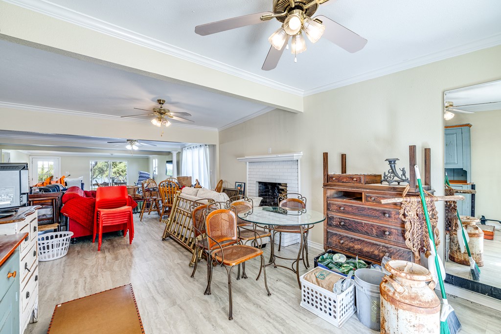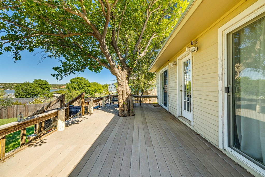 This is a sweet 2/2 weekend lake house. Good floor plan with a large living room. The lot is mostly flat heading down to the water. There is a shop with elec, gazebo and a double boat dock. Extra parking out from with paved driveway heading down to the carport.