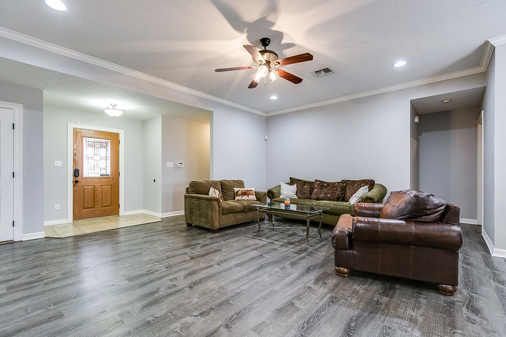 Desirable PaulAnn Park is the location of this striking home. The open floor plan features wood laminate and tile flooring and crown molding trim. If large gatherings in your kitchen is your party style, this is the home for you--big open kitchen with plenty of cabinet/counter space. The center of the home is where the large living room/dining space is located and ready for fun family games to be played. Double sinks and a separate shower/tub in the primary bath allow for plenty of shared space. The covered porch leads out to a beautiful wood pergola on a concrete slab -- perfect for those outdoor barbecues and gatherings. With a ravine on one side of this home and no homes behind it, this property offers great privacy. As our housing market ramps up, it is likely that this home will not last long. Find your real estate agent and get scheduled to tour it today!