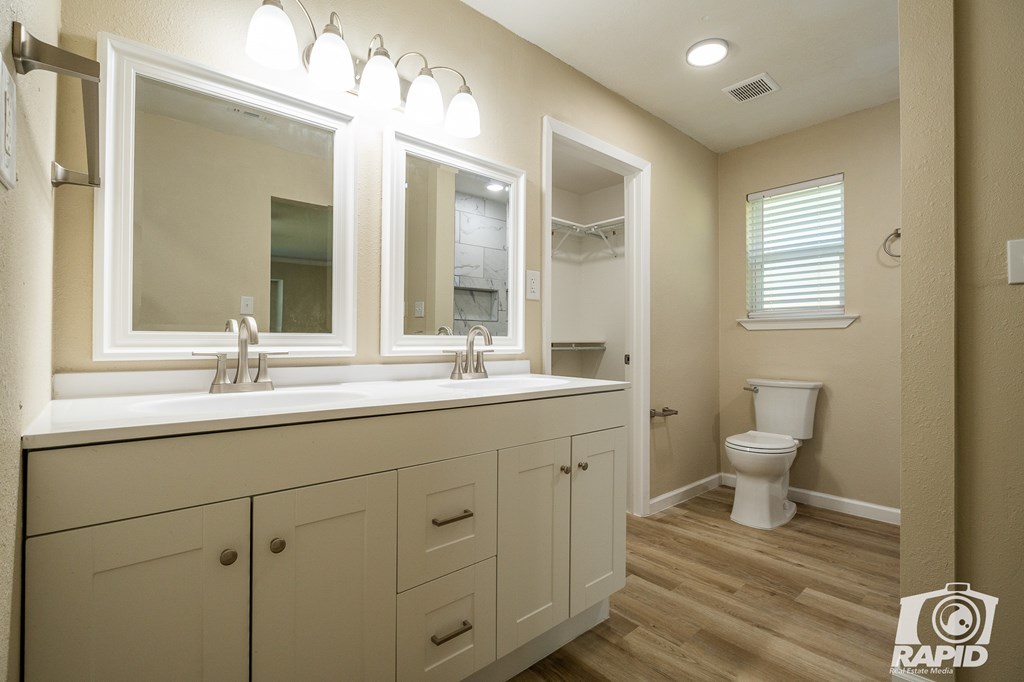 Check out this newly renovated home. You're bound to fall in love with this stunning Southland home, offering 3,046 sq. ft. of inviting style. The home features luxury vinyl flooring, a warm colors, and a partial open floor plan with a split-bedroom layout. The master suite is an absolute retreat with dual walk-in closets, double sinks, & a large walk-in shower. You'll find 4 bedrooms, 3 baths, and 3 versatile living spaces. Third is perfect for an office, game room, playroom, or gym. The open kitchen connects seamlessly to the den and includes a sizable 9 x 3.5 walk-in pantry & new appliances, along with book-matched quartz counters. Essential updates bringing peace of mind, include a new roof, windows, sprinkler system, garage door w opener, air handler/furnace, rain gutters, plumbing fixtures, & appliances. Design updates include faux wood blinds, quartz counters, luxury vinyl flooring, fresh tile work, new int/ext paint, and refreshed landscaping. Plenty of extra parking.