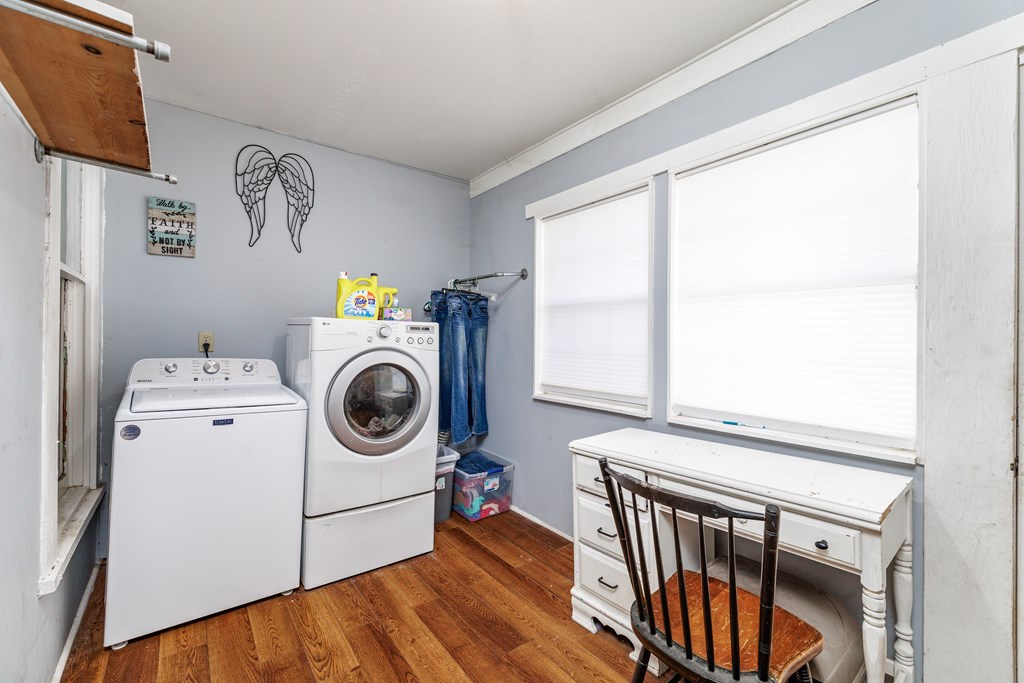 Discover this spacious 2,915 sq. ft. 2-story home, featuring a large wrap-around front porch perfect for relaxing. Inside, a cozy fireplace welcomes you in the entrance. The living room has high ceilings and a gas fireplace; while the dining room offers access to the primary bedroom upstairs with a bathroom, but the bathroom is not fully operational and needs to be completed. The open kitchen overlooks the backyard, which features large trees providing shade and a garden bed. The home requires some TLC, but has incredible potential. Barn/shop, which also needs updating, is 11x24 with electricity and a 11x6.6 hinged door facing the side street.
