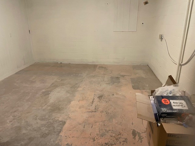 Totally remolded office with new flooring, paint, and electrical panels.