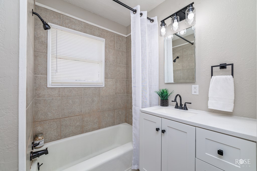 Step into this gorgeous fully renovated, open-concept 2-bedroom, 1-bath abode, where spaciousness and natural light create an inviting atmosphere throughout. This home features fresh interior paint and new flooring throughout with modern light fixtures to add a touch of modern elegance. The bathroom has been beautifully updated with a new vanity and backsplash, adding a refined, fresh look. The kitchen provides plenty of counter space, a stylish kitchen backsplash, new appliances, sleek countertops with a brand new sink, perfect for all your culinary creations. Enjoy outdoor living on the covered front porch or relax in the private backyard with a brand new privacy fence for seclusion and security. A divider privacy fence in the backyard offers extra space to park your vehicle while still maintaining a large open area ideal for relaxation and outdoor gatherings. A new roof provides peace of mind and security. This home is a perfect blend of comfort, style, and convenience!