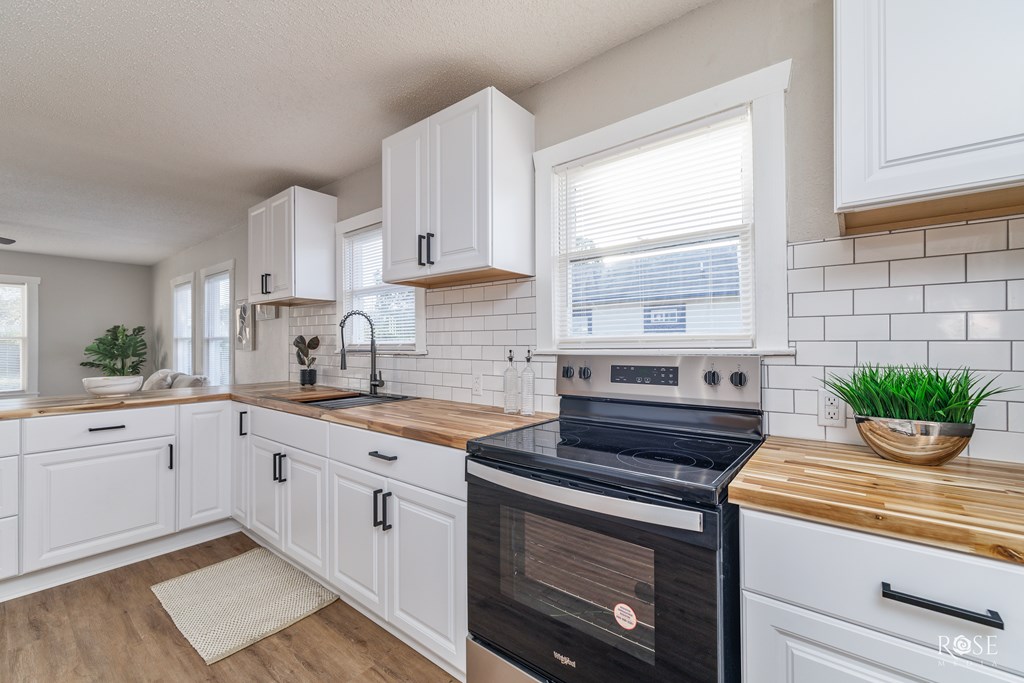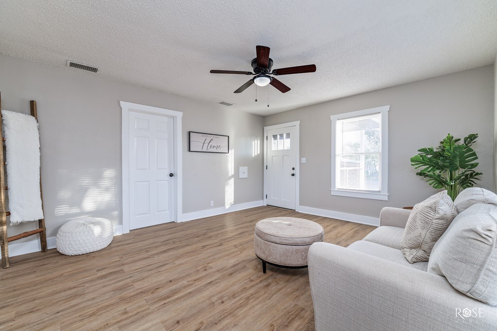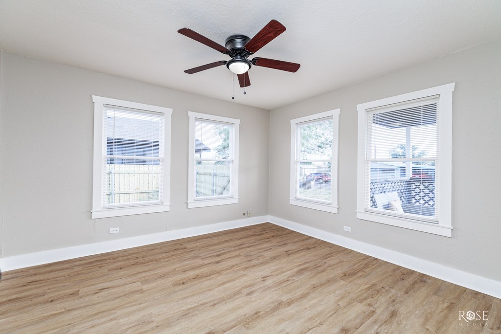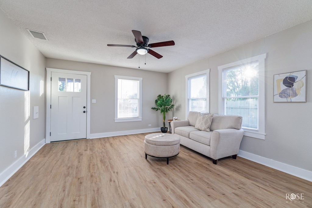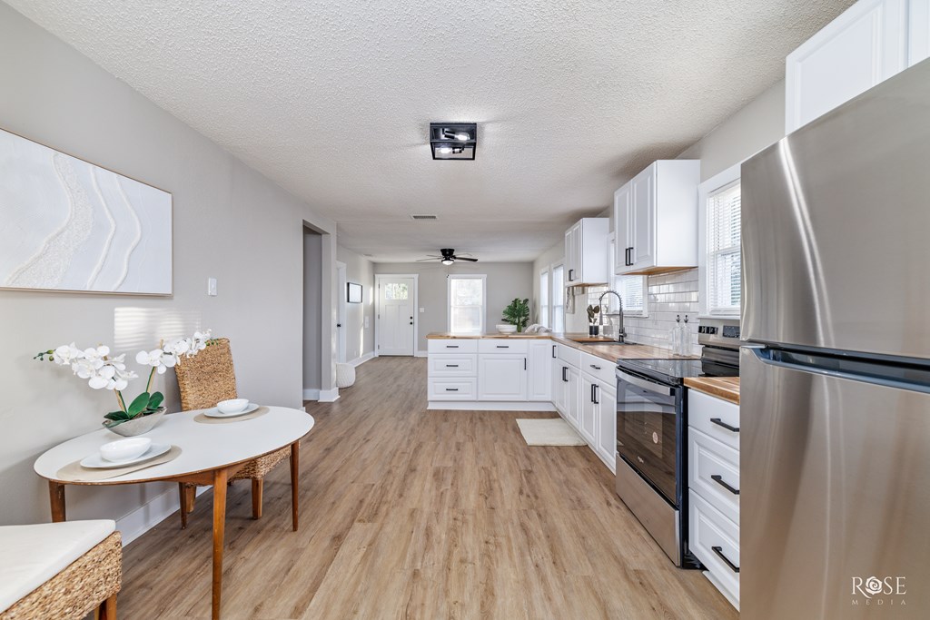 Step into this gorgeous fully renovated, open-concept 2-bedroom, 1-bath abode, where spaciousness and natural light create an inviting atmosphere throughout. This home features fresh interior paint and new flooring throughout with modern light fixtures to add a touch of modern elegance. The bathroom has been beautifully updated with a new vanity and backsplash, adding a refined, fresh look. The kitchen provides plenty of counter space, a stylish kitchen backsplash, new appliances, sleek countertops with a brand new sink, perfect for all your culinary creations. Enjoy outdoor living on the covered front porch or relax in the private backyard with a brand new privacy fence for seclusion and security. A divider privacy fence in the backyard offers extra space to park your vehicle while still maintaining a large open area ideal for relaxation and outdoor gatherings. A new roof provides peace of mind and security. This home is a perfect blend of comfort, style, and convenience!