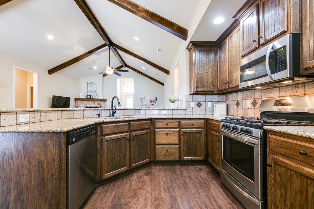 How does living on a rarely driven street in an exclusive neighborhood sound? Perfect, right? This home encompasses beauty, practicality, and space! Cathedral Ceilings with beautiful wood beams and the cozy corner fireplace make this open concept living space the perfect spot for great entertaining. The gourmet kitchen serves as the heart of the home, featuring a large breakfast bar for gathering, granite countertops, gas stove with matching stainless steel appliances, custom cabinetry and pantry. Split bedroom layout gives the perfect amount of privacy for your built in study nook. The primary ensuite boasts a spacious walk-in shower, soaker tub, oversized closet, and dual vanities- all situated on one side of the home. Meanwhile, 2 spacious bedrooms and a secondary bath are located on the other side. Exterior of the home features easy care xeriscaped in the front and large covered patio with lush grass in the back. https://youtu.be/hArHw4VgLZI?si=Lskylsiw3qCXMlJq