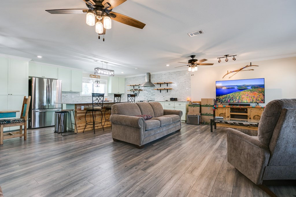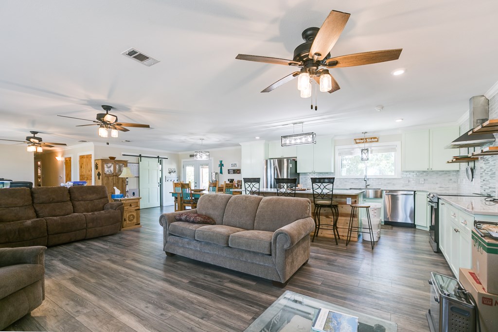 Discover this stunning 3-bedroom, 1.5-bathroom home nestled on 3.12 acres of beautifully landscaped land. Perfect for outdoor enthusiasts and those seeking a peaceful retreat, this property boasts 26 majestic pine trees and 15 fruit trees, creating a serene oasis. Spacious Living: Generously sized bedrooms with ample natural light. Gourmet Kitchen: Huge, updated kitchen featuring gorgeous Quartz countertops and an impressive backsplash, perfect for entertaining. Outdoor Haven: Enjoy a raised vegetable garden, a greenhouse with an attached garden shed, and covered patios for relaxing or hosting gatherings. 2 RV parking spaces equipped with 50 amp electrical connections. Secure 8x10 storm shelter for peace of mind. Workshops & Storage: Insulated workshop, sea container with awning, and a back storage room with additional awning. Unwind in your private hot tub, surrounded by nature. 2 septic tanks, water well with drip lines to every tree on the property, fresh new paint throughout.