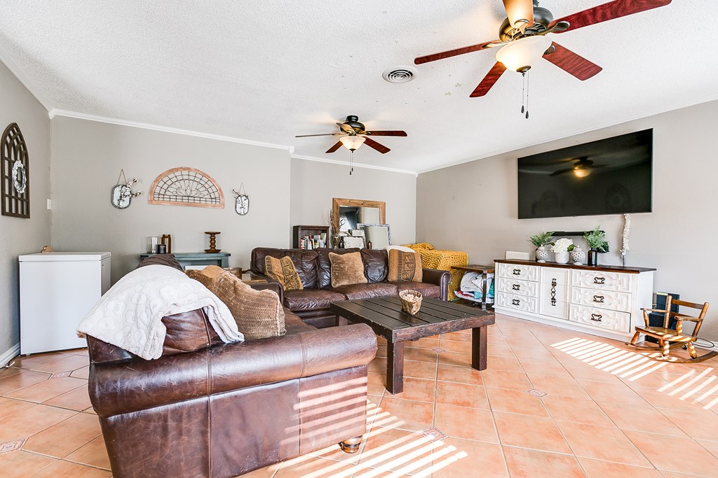 Welcome Home to this 3 bedroom 2 bath home located in a warm, friendly neighborhood. This property features a spectacular kitchen with updated cabinetry, wood-like ceramic tile flooring throughout, and ample room to entertain during the holidays!! Step into the huge den perfect for gatherings or cozy up next to the fireplace in the dining room. The large yard has mature trees and a covered patio providing a peaceful retreat and plenty of room for outdoor activities. Extra perks include a large pantry, new triple pane windows ensuring energy efficiency, freshly painted siding, and a recently replaced roof in 2021. Located close to parks and schools, this home is a place to create lasting memories.
