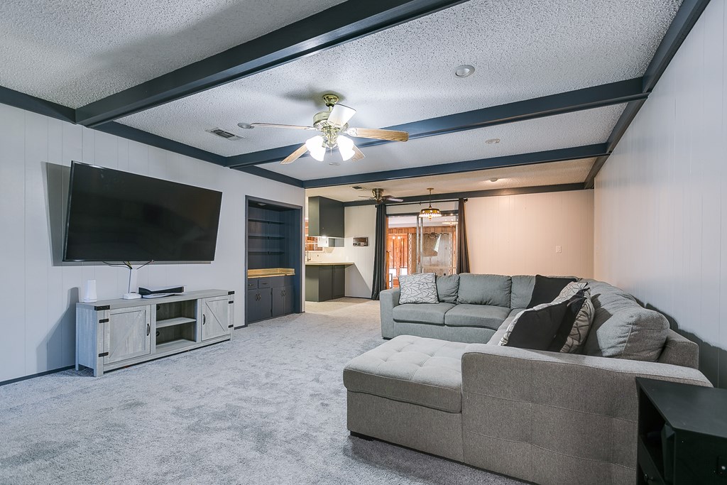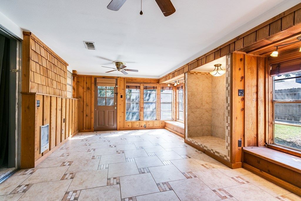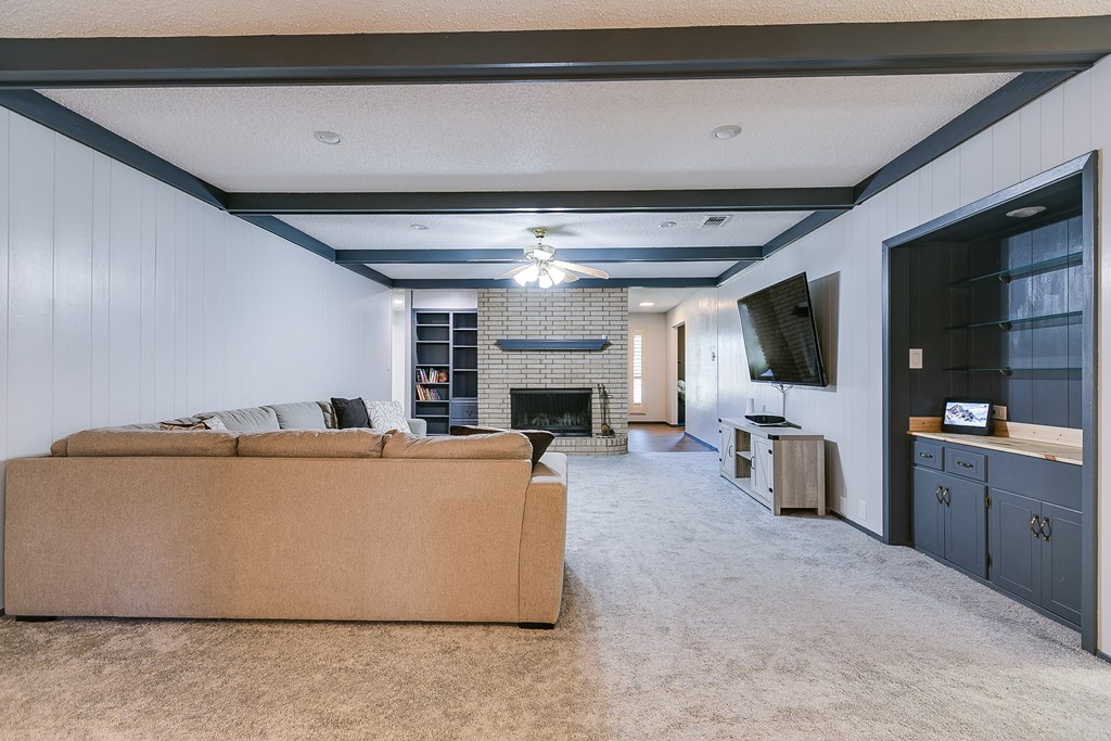 Centrally located, with over 2,400 sq. ft of spacious living this 3 bed, 2 bath home is a perfect blend of comfort, style, and practicality. The heart of the home boasts a stately living area, complete with a cozy wood-burning fireplace and faux wood beams, ideal for creating warm memories. The versatile front room can easily serve as a second living area or a productive office while an inviting enclosed porch adds another flexible space, perfect for entertaining. This property showcases thoughtful updates, including newly renovated bathrooms, updated plumbing, plush carpet, luxury wood plank flooring, fresh paint throughout, along with stylish closet organizers that maximize storage. Enjoy high-speed fiber internet and energy-efficient solar panels, making this home both functional and environmentally friendly. The beautifully landscaped front and back yards, shaded by large trees, provide a serene outdoor escape. Don't miss the opportunity to make it yours!