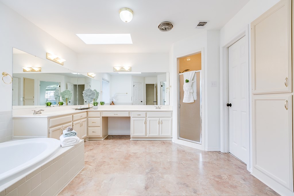 This 4 bed|3 bath home combines an open-plan design w/ inviting touches, perfect for life's big moments & everyday cozy gatherings. Step into a living room bathed in natural light, anchored by a gas fireplace just begging for you to relax & enjoy the space. This chefs kitchen is equipped w/a central cooktop island, granite counters & endless cabinets. It's a space where culinary creativity & good conversation flow freely. Retreat to the spacious main suite, complete w/a spa-like ensuite & garden tub made for long, luxurious soaks. Across the home, you'll find a guest suite w/its own private bath & a French door that opens directly onto the patio & backyard—ideal for guests or a parent craving their own space. For added peace of mind, a built-in security system keeps you covered, while a sprinkler system takes the hassle out of keeping your landscaping lush. Every inch of this home exudes charm & thoughtful detail—perfect for those who want a touch of elegance w/all the comforts of home