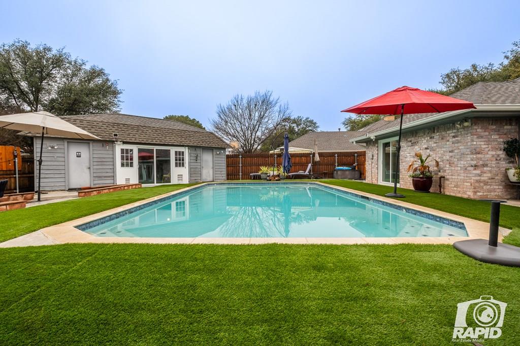 This beautifully remodeled 4-bedroom, 3.5-bathroom home offers nearly 3,000 sq. ft. of stylish living space. Situated on a desirable corner lot, this home boasts numerous updates, including fresh paint, new flooring, a new water heater, updated bathrooms, resurfaced kitchen cabinets, modern fixtures, a cozy fireplace and a brand-new stove in the desired Southland neighborhood. Designed for entertaining, the spacious living area features a wet bar, while an additional bonus room can serve as an office, den, or sunroom. Two spacious primary ensuites with private bathrooms is ideal for a mother -in-law setup or extended family stays. Step outside to your private backyard retreat, complete with a heated in-ground pool and a dedicated pool cabana equipped with a sink, cooktop, and bathroom perfect for guests. Meticulously maintained and charming, this home is a true standout in Southland. Don't miss your chance to make it yours.