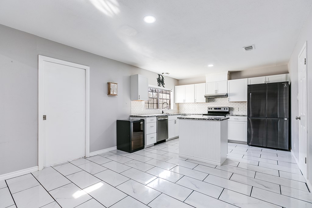 This picturesque three-bedroom, two bath, two car garage home has been thoughtfully updated and offers a spacious bonus room. Nestled in a quiet, peaceful neighborhood with mature trees, it's conveniently located near Goodfellow AFB. The spacious living room features a stunning wood-burning fireplace and seamlessly flows into the kitchen and dining areas, creating an ideal space for entertaining. The kitchen boasts elegant granite countertops, farmhouse sink, stainless steel appliances, pantry, and a stylish modern subway tile backsplash. The spacious primary bedroom includes a sliding glass door that opens to the patio and a beautifully renovated en-suite bathroom. The bright and airy bonus room offers plenty of natural light and endless possibilities for customization. Outside you will find a covered patio that can be utilized to additional parking, privacy fenced yard, and workshop!