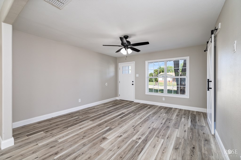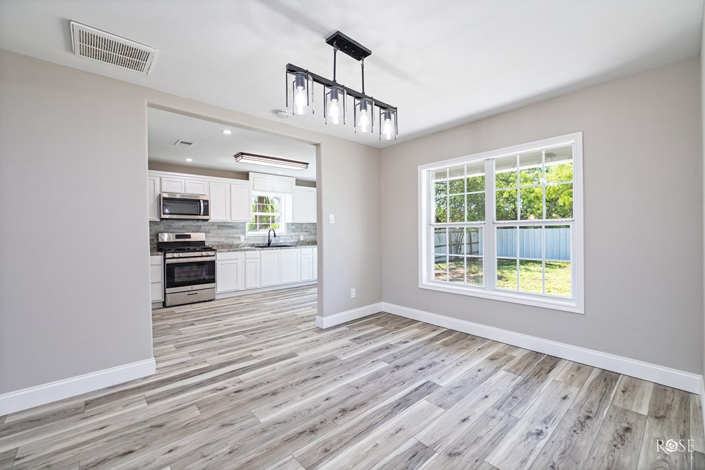 This charming residence has had a recent renovation that has breathed new life into it. A new roof, electrical panel, plumbing, windows, flooring and a tankless water heater ensure peace of mind and a fresh start for its fortunate new owners! As you approach the house, the fresh siding on the front facade hints at the attention that has been poured into this remodel. Step inside and you'll fall in love with the thoughtfully designed living areas that maximize both functionality and style. The house features two cozy bedrooms with great closets and one bathroom, adorned with contemporary fixtures and finishes. A closet could be easily added to the third bedroom or continued to be used as a home office, a playroom, etc., this room adapts effortlessly to accommodate your needs. The kitchen is a dream with custom cabinets, gas stove, large sink, and stylish backsplash. The large backyard is fenced and ready for you!