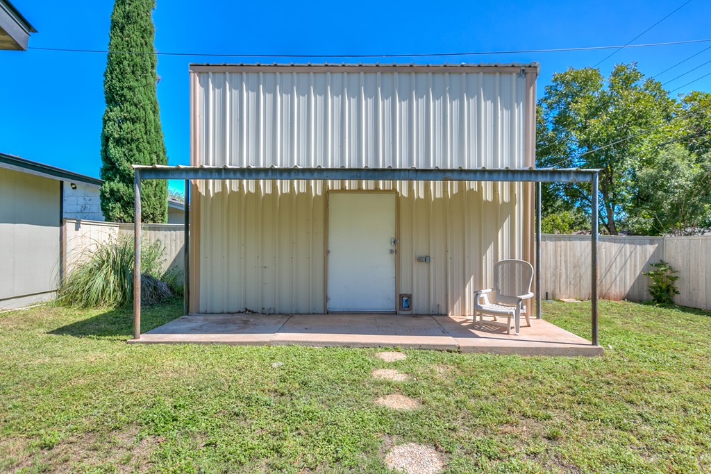 Nestled in the coveted College Hills neighborhood of San Angelo, this charming home offers the perfect blend of character & modern upgrades. Ideally located near Angelo State Univ, restaurants, & shopping, convenience is at your doorstep. The home boasts a unique feature: vintage doors from the Roosevelt Hotel circa 1920s, adding a touch of rare history. Inside, you'll find an open-concept living & kitchen area, with luxury vinyl and Saltillo-inspired tile flooring. The updated kitchen shines with granite countertops, newer cabinets, & stylish hardware, while the wood-burning fireplace creates a cozy ambiance in the living space. Both bathrooms have been updated, complementing the modern feel of the home. Step outside to a spacious backyard, perfect for outdoor gatherings. Additional highlights include updated windows, 1-car carport, & a 2-story storage building with a loft and covered patio. This home is a rare gem blending charm with modern amenities. Schedule your showing today!