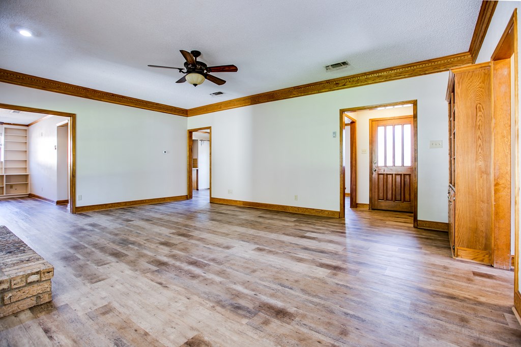 Move in ready, Southland Hills area home boasts 3 bedrooms 2 bathrooms. This home features luxury vinyl wood flooring throughout most of the house. You are sure to love the updated bathrooms with granite counter-tops and new light fixtures The primary bathroom has a beautiful walk-in shower. This home has a split bedroom arrangement and the primary bedroom is spacious. There is a large living room with a fireplace, perfect for those cool winter days. There is also an extra bonus room that could be used as a game room, den, playroom or office. With a dedicated dining area the floor plan flows well and will be perfect for hosting those upcoming holiday gatherings. This home is perfect for entertaining friends and family. The outdoor space is inviting as well, with a covered patio and a nice big backyard. Two car garage and paved alley. Blinds on all windows. Come see this fabulous house and all it has to offer.