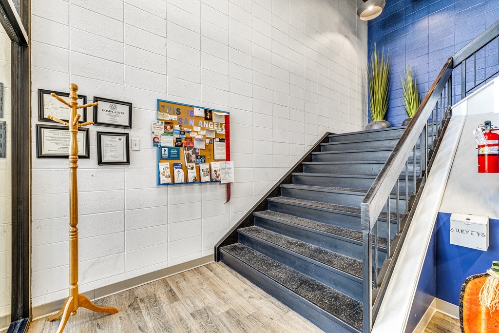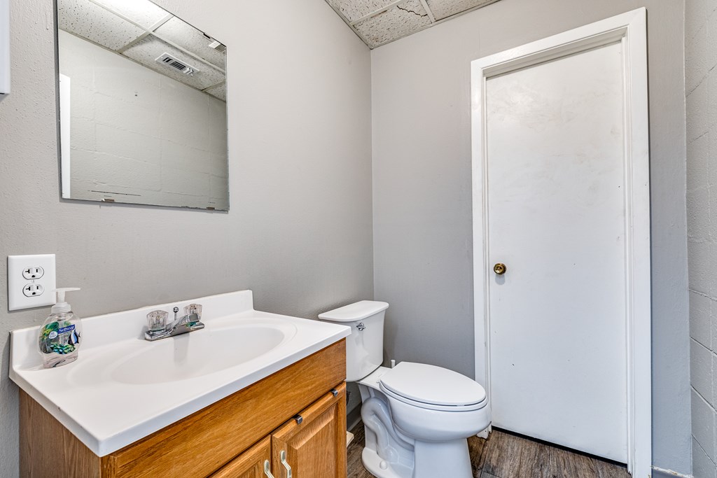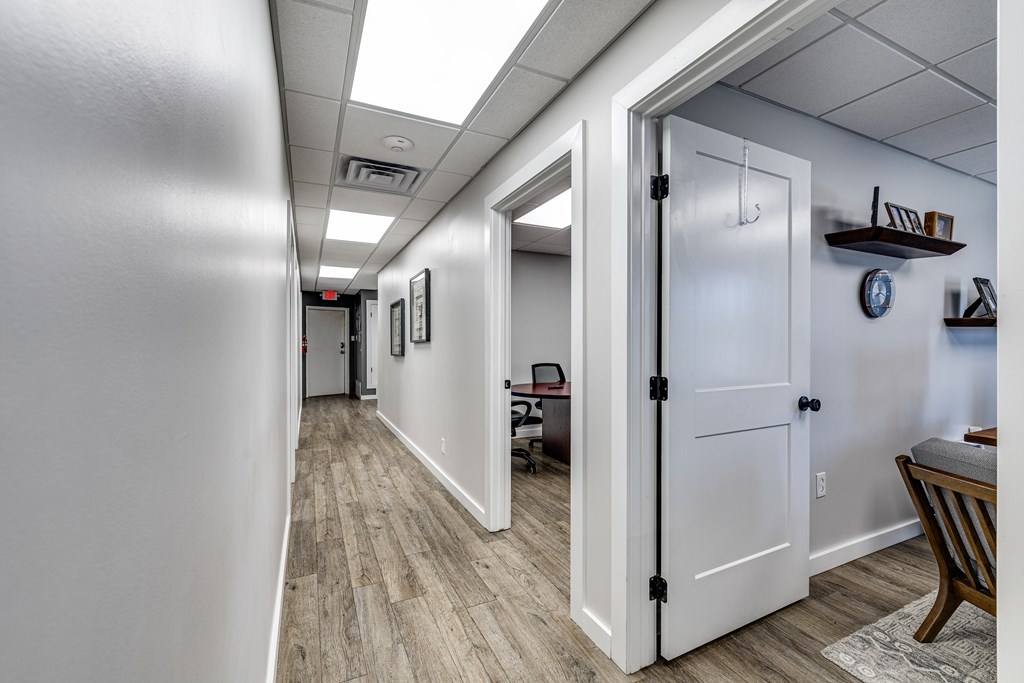 This is a 2 story office building with a great location, tons of space, and versatility. The downstairs has a private entrance, a reception area, 4 offices, a bathroom, a kitchenette, rear parking and access, a large storage closet and is metered separately. The upstairs with all new flooring and paint has an open concept entry/reception area, 4 large offices, 2 bathrooms, a kitchenette, rear parking/access, and is metered separately. The upstairs or downstairs could be leased while the other is owner occupied for additional income. The potential is endless in this building! The .348 acre lot that sits in front of the building is also for sale.