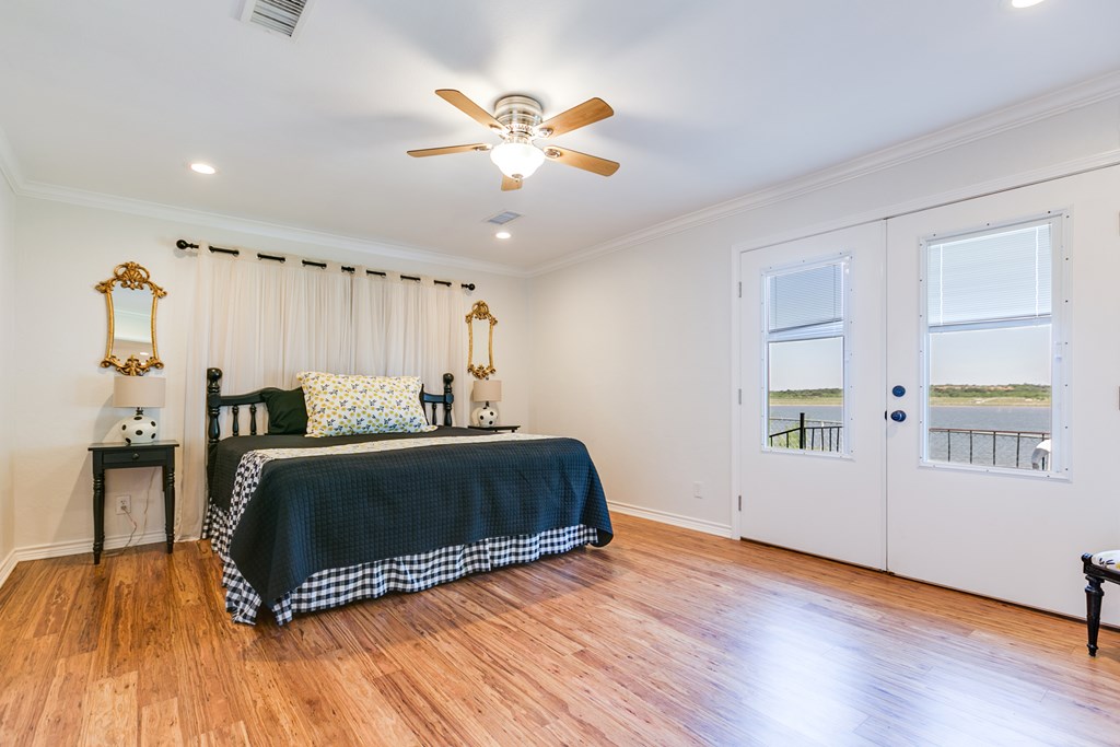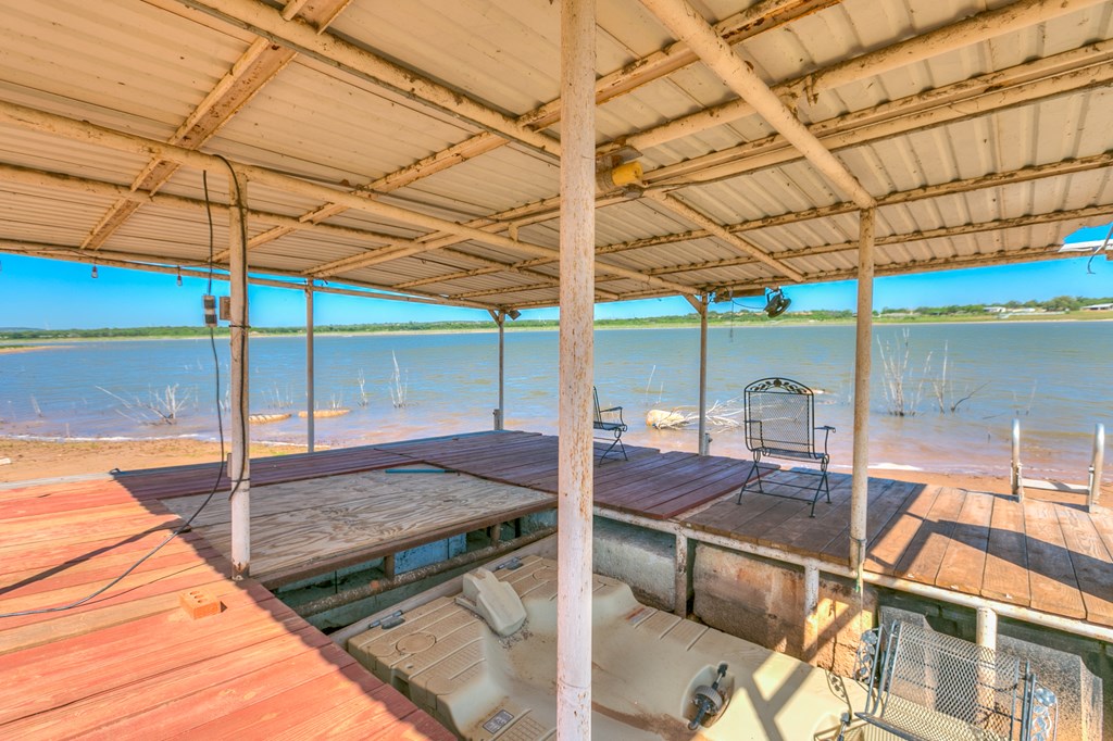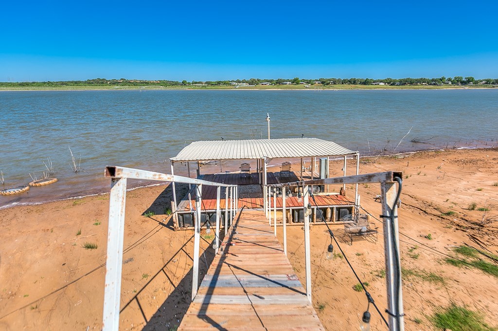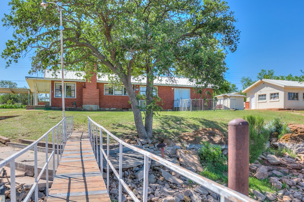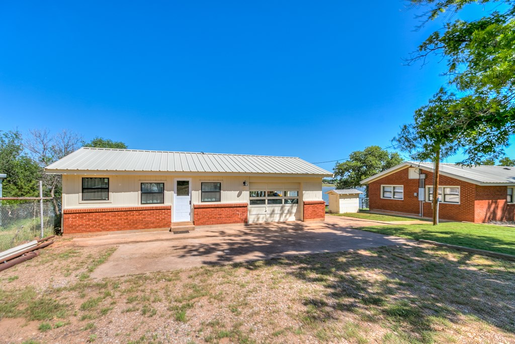 Looking for the perfect getaway at Oak Creek Lake or an income producing Airbnb lake property? Take a look at this remodeled, 2 bdrm, 1 bath brick home, with an additional 580sq. ft. guest house. Main house has an open concept kitchen, dining and family room...granite countertops, bamboo flooring, soft close cabinetry, electric fireplace, new metal roof installed 2023. Large bedrooms and a large bathroom, including a walk-in shower (ADA accessible). Charming guest house is a 1 bdrm, 1 bath, with a kitchenette and living room...remodeled in 2023...it is attached to an enclosed garage, which would make a perfect workshop, extra storage, man-cave, or game room. Covered parking, two RV hookups, a dock for fishing, floating and entertaining! Beautiful lake view.....Yard has large, mature pecan trees and a storage building. Well water. Don't miss this gem on Oak Creek Lake! Furnishings can covey with the property! Call or text Cyndi Carlton @ 325-227-2217 to schedule a showing.