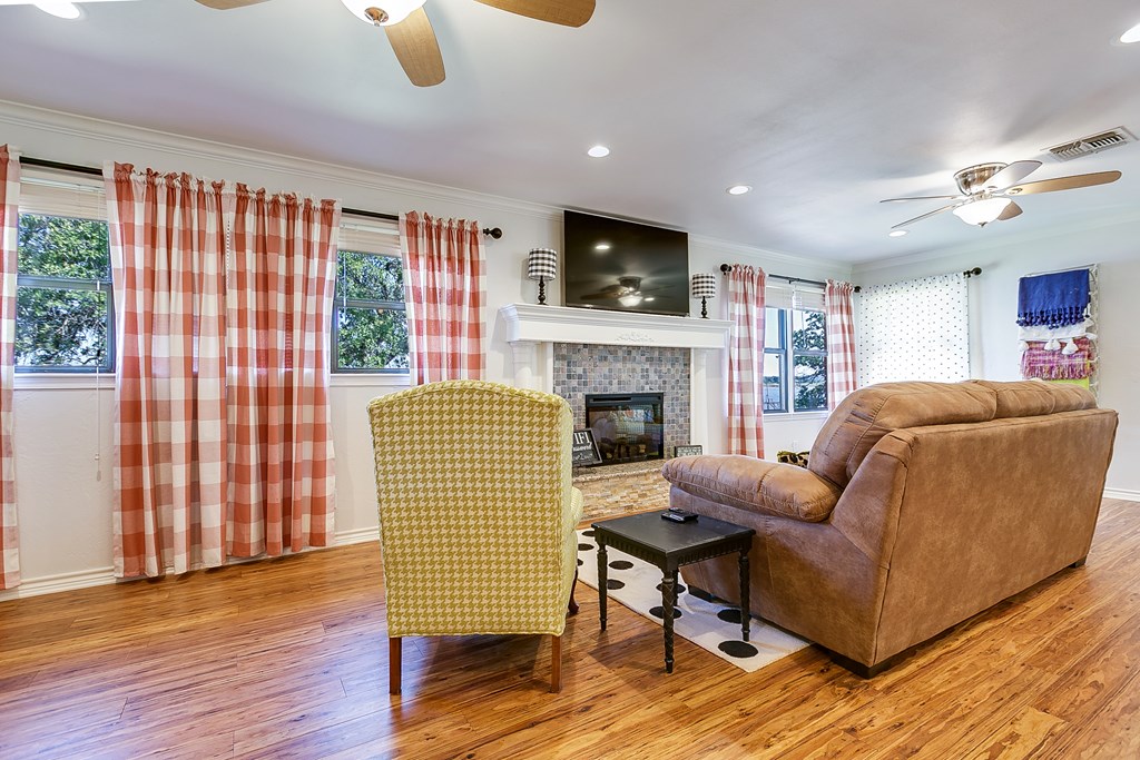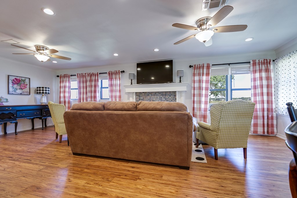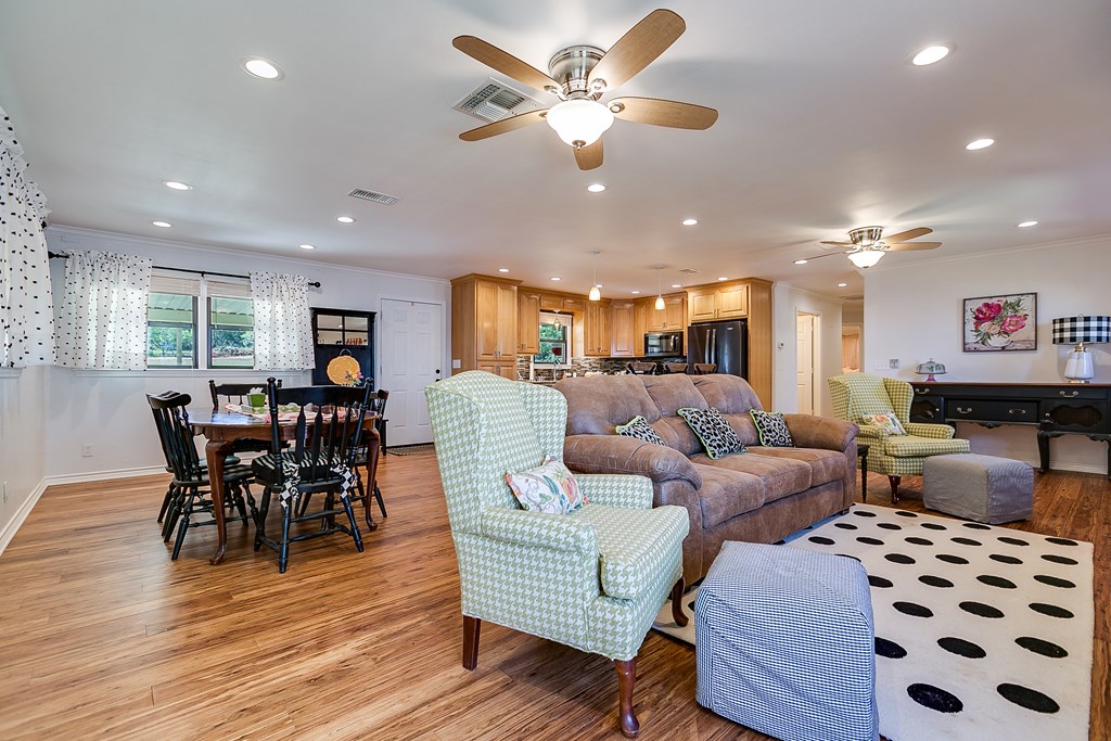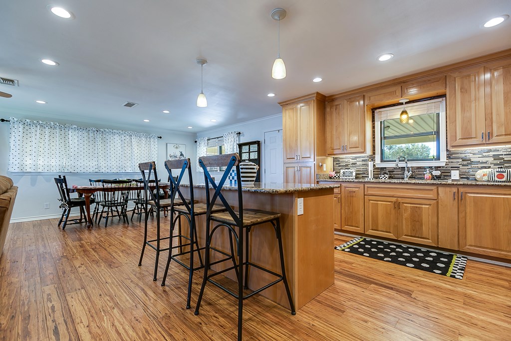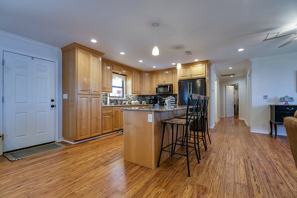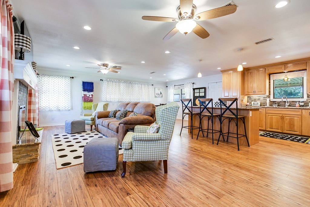 Looking for the perfect getaway at Oak Creek Lake or an income producing Airbnb lake property? Take a look at this remodeled, 2 bdrm, 1 bath brick home, with an additional 580sq. ft. guest house. Main house has an open concept kitchen, dining and family room...granite countertops, bamboo flooring, soft close cabinetry, electric fireplace, new metal roof installed 2023. Large bedrooms and a large bathroom, including a walk-in shower (ADA accessible). Charming guest house is a 1 bdrm, 1 bath, with a kitchenette and living room...remodeled in 2023...it is attached to an enclosed garage, which would make a perfect workshop, extra storage, man-cave, or game room. Covered parking, two RV hookups, a dock for fishing, floating and entertaining! Beautiful lake view.....Yard has large, mature pecan trees and a storage building. Well water. Don't miss this gem on Oak Creek Lake! Furnishings can covey with the property! Call or text Cyndi Carlton @ 325-227-2217 to schedule a showing.