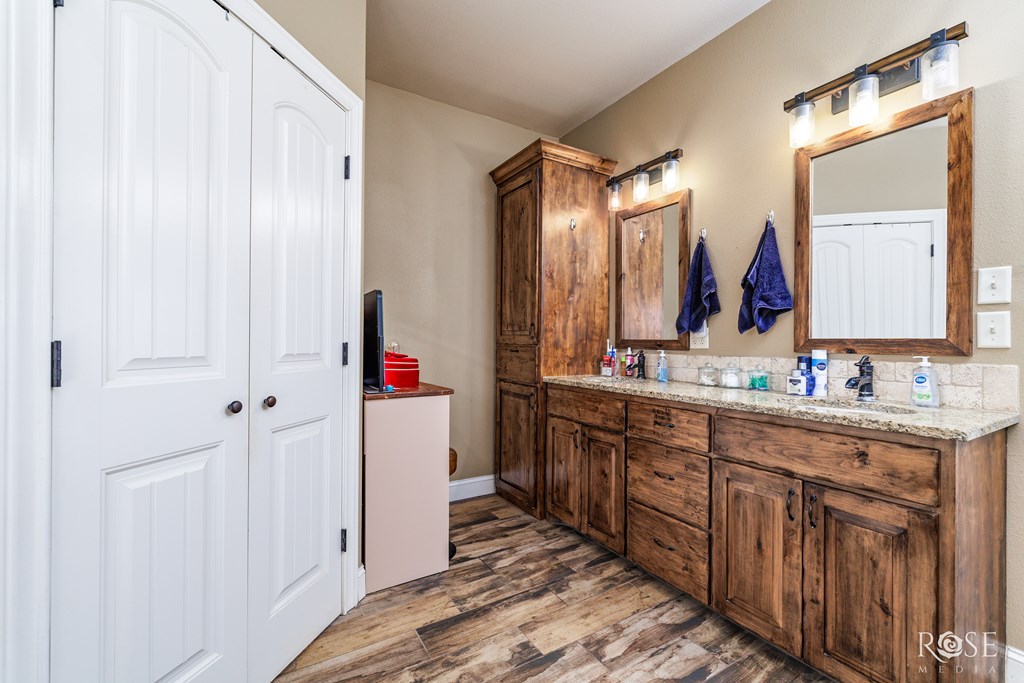 Nestled on 1.232 acres, this beautiful home offers the perfect blend of peaceful country-like living with the convenience of town just minutes away! Step inside to find a thoughtfully designed layout featuring rock accents, wood burning fireplace, soft-close cabinets, a whole-house water filtration system, and a water softener for ultimate comfort. With four bedrooms, there's plenty of space for everyone—the fourth bedroom also makes an ideal home office or flex space to suit your needs. Enjoy the freedom of wide-open spaces while still being close to shopping, dining, and amenities. All room sizes are approximate.