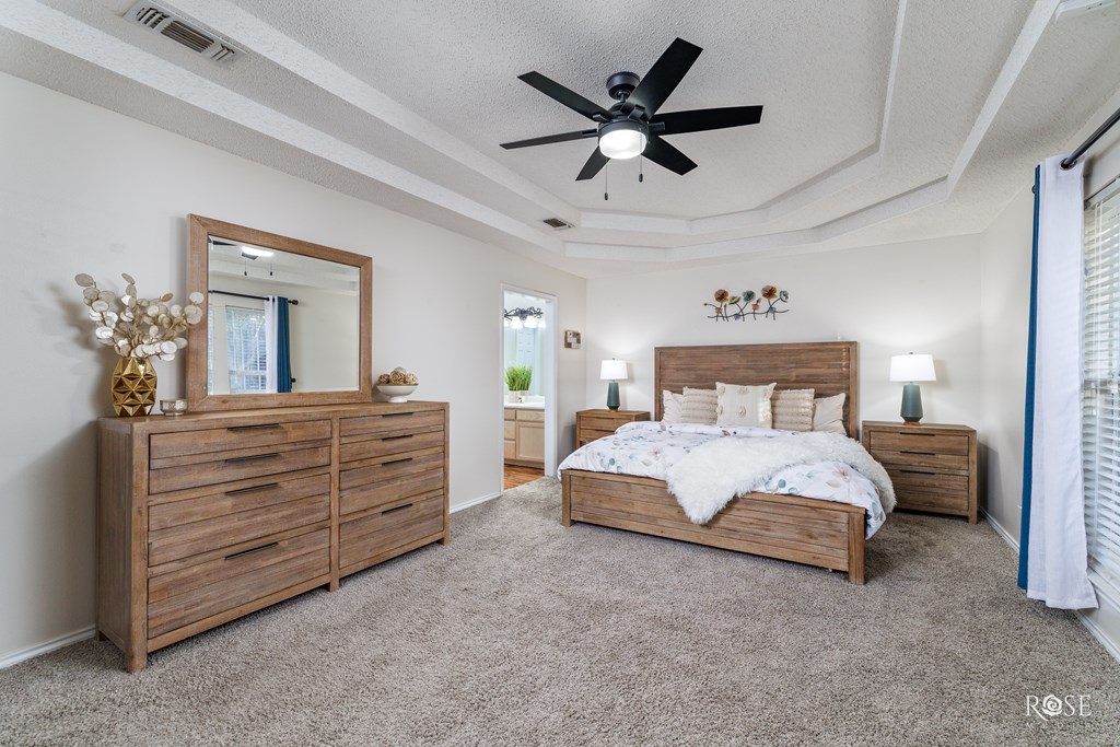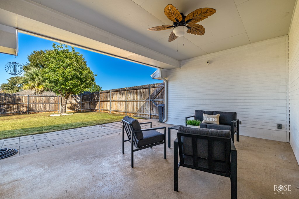 This gorgeous 4-bed, 2-bath home in the sought-after Southland area offers a perfect blend of style and comfort. Sunlight pours in through large windows, showcasing the stunning wood plank porcelain tile flooring. The spacious kitchen is designed to impress, featuring ample counter space, plenty of cabinetry, and a convenient island. Storage solutions are integrated throughout the home, ensuring plenty of room. Each bedroom is generously sized, with the primary suite offering a private ensuite bath and a walk-in closet for ultimate convenience. The grand living room, complete with tall ceilings and a cozy fireplace, provides a perfect space for relaxation and gathering. Step outside to a large, privacy-fenced backyard, with a spacious covered patio inviting you to enjoy outdoor living in comfort. The backyard also includes access to a paved alleyway. Energy-efficient solar panels, fully paid off at closing, add lasting value, and the well-kept curb appeal makes this home standout.