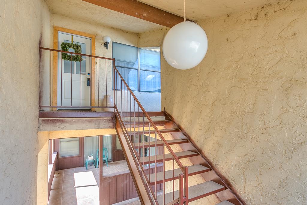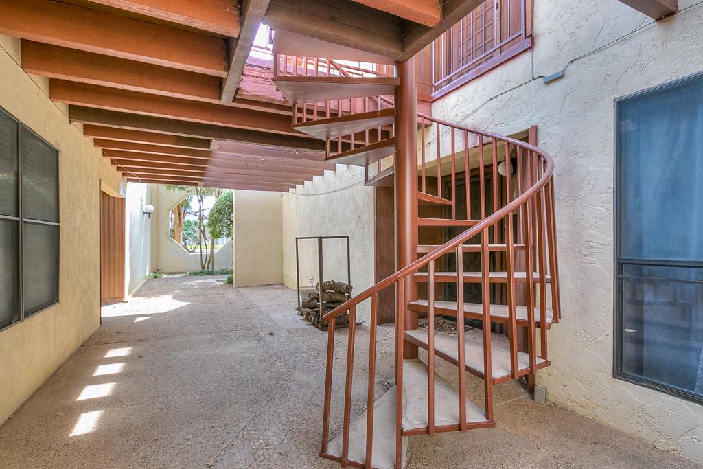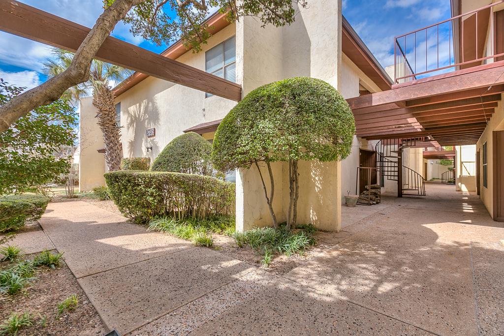 Looking for a cute home in a great quiet, safe neighborhood without any of the maintenance? Then this cute condo is what you need. Located upstairs, you have your own private stairwell and entry to the property. This little charmer has new paint, new roof, new flooring, a recently installed new inside HVAC unit, and a new stove. Outside has new stucco and they are painting all the wood exterior. ALL appliances convey. The dining room can be used for a bonus room, sunroom, or a place to create your own space with a bird's eye view of the perfectly landscaped trees and shrubs. Master has two 5X11 walk in closets with extra storage space throughout the unit. Fees for condo include structure insurance, yard/outside maintenance, trash and sewer. Also grants you access to the clubhouse, tennis courts, pool and river!! Walking distance to Walmart. Don't miss this charmer!! Great property at a great price!!